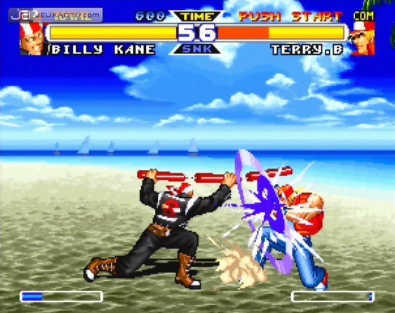 Real Bout Fatal Fury, Real Bout Fatal Fury Special et Real Bout Fatal Fury 2 : The Newcomers, tels sont les noms des trois derniers épisodes de la saga Fatal Fury, plus connue dans son pays d’origine sous le nom de Garo Densetsu. Sortis entre 1995 et 1998, ces trois volets constituent une trilogie un peu particulière, dans la sens où ils tranchent radicalement avec les précédents opus, aussi bien dans le fond que dans la forme. Avec Real Bout Fatal Fury en 1995, SNK tentait de redonner un souffle nouveau à sa série, mais aussi au genre de manière générale. Pour marquer la fracture, les développeurs ont opté pour un style graphique différent, plus cartoon dans l’âme et avec des personnages à la carrure imposante. S’il s’agit du même moteur graphique utilisé pour Fatal Fury 3, celui de Real Bout Fatal Fury semble plus abouti. On remarque d’ailleurs une véritable évolution au niveau des personnages, bien mieux animés et disposant d’une palette de coups plus conséquente. Avec la présence officielle de Yamakasi, Jin Chon Rei et Jin Chon Shu mais aussi l’entrée fracassante de Billy Kane et Duck King, le nombre de personnages dans Real Bout Fatal Fury se chiffre à 16 protagonistes. Une liste plutôt honorable, d’autant qu’il va falloir réapprendre quelques bases avant de pouvoir maîtriser le jeu de bout en bout.
