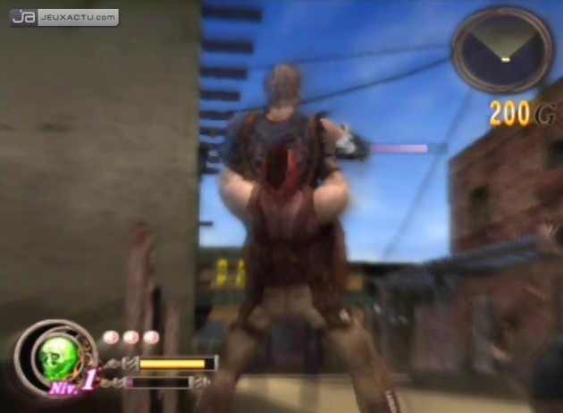 La bonne prestation d'Ultimate Ghosts'n Goblins sur PSP a donc fini par convaincre Capcom de retenter le coup sur sa grande sœur cette fois, avec un beat'em all qui rappelle les heures de gloire des Double Dragon, Streets of Rage et autres Final Fight. Pour assurer le coup, c'est à Clover Studio, déjà à l'origine de l'excellentissime Okami et du très coloré Viewtiful Joe, que l'éditeur nippon a décidé de confier le développement du jeu. Avant tout destiné aux hardcore gamers, God Hand reprend toutes les mécaniques de l'époque dans un univers 3D qui s'avère rapidement problématique. En commençant par le level design qui semble être resté au placard : les niveaux sont vides et les textures médiocres. On pourra toujours noter quelques effets de blur et de lumière qui traînent au coin de la rue, mais vraiment pas de quoi casser la baraque. Comme on pouvait s'y attendre pour un titre de ce genre, quelques éléments destructibles viennent décorer le paysage, et on peut toujours s'emparer d'un poteau ou d'une batte de base-ball pour faire la loi dans les quartiers. La modélisation des personnages est quant à elle plus présentable, même si la dégaine des loubards et de leurs potiches demeure basique et pas très originale. Cela dit, le character design n'était pas au centre des préoccupations dans les années 80, l'objectif premier étant de fournir un système de combat blindé pour évoluer rapidement dans les différents stages. De ce côté-là, Clover Studio s'est plutôt bien débrouillé, avec un combo de quatre hits maxi via la touche Carré que l'on peut customiser en modifiant les coups. Par ailleurs, il est possible d'attribuer à chacun des boutons de façade un mouvement précis, les plus lents provoquant évidemment le plus de dégâts.