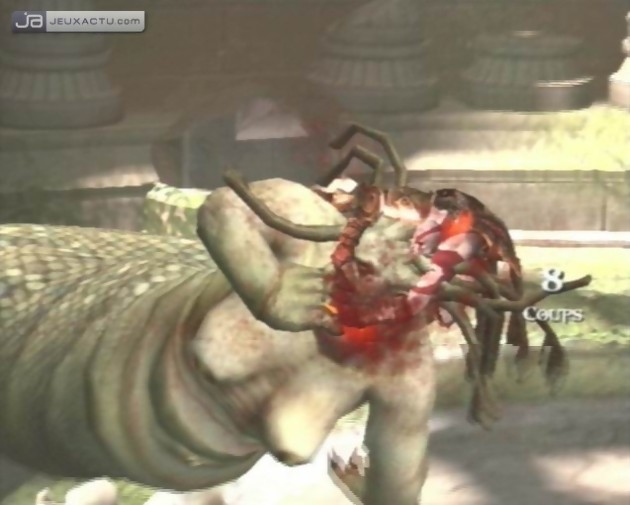 On vous l'a fait comprendre, God of War II n'est pas une révolution par rapport au premier épisode, ce qui lui a d'ailleurs valu des insultes à peine déguisées de la part des radins du portefeuille. Si le gameplay sera vraisemblablement remis à neuf sur Playstation 3, on a droit ici à la même recette, avec des ingrédients en plus et en moins pour ne pas avoir l'impression d'être à la cantine. L'absence remarquée du lock fait toujours débat chez les adeptes de la précision qui n'aiment pas trop s'en remettre au destin pour éliminer les monstres. C'est vrai quoi, exécuter des combos sans trop savoir où le coup va frapper, c'est assez frustrant. D'un autre coté, une fois l'enchaînement lancé, il est toujours possible de changer de direction pendant sa réalisation, ce qui fait que l'on est très rarement pris en traître. Une souplesse qui ne fait pas pour autant oublier l'aspect très bourrin des combats, au risque de sombrer dans le linéaire. En fait, le joueur peut se contenter de conserver et d'améliorer l'arme de base pendant la douzaine d'heures de jeu, sans rencontrer le moindre problème. Modifier le niveau de difficulté pour s'offrir un peu de challenge peut résoudre le problème. Sony a pensé à intégrer quelques artifices, tels que les Ailes d'Icare qui permettent à Kratos de prendre son envol de façon ponctuelle. Au rayon armes, on a droit à du grand classique avec les Lames d'Athéna, le Marteau de Barbare ou encore la Lance du Destin. Chacune d'elle est bien sûr upgradable via les orbes rouges, tandis que les bleus s'occupent de regénérer les PM. On notera également la présence d'une troisième jauge jaune qui permet en fait de ralentir le temps. Certains y verront un pompage non dissimulé de Prince of Persia, mais dans le jeu des comparaisons on peut aller beaucoup plus loin. Prenons par exemple les QTE qui torturent les phalanges toutes les deux minutes. Bien évidemment, le charme du concept atteint son paroxysme lors des affrontements contre les boss, un carré ou un triangle provoquant un vent de panique alors que l'on se grattait le nez. Le jeu bénéficie d'une ambiance musicale mélodieuse. Entièrement dévoués à l'action pure et dure qui émane du DVD, les thèmes sont dignes des plus grandes productions hollywoodiennes. Le doublage français est quant à lui soigné, en en faisant ni trop ni pas assez. Une clé de sol parfaite qui dissimule à moitié son amour pour les craquements d'os et les gerbes de sang.