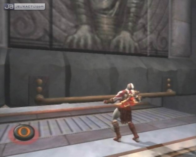 Déjà proche de la perfection, le level design se contente d'incorporer de nouveaux boss histoire de gommer l'un des rares défaut de God of War. Cette fois, Sony a privilégié la quantité à la qualité, incapable de trouver un juste équilibre entre charisme et abondance. On se retrouve face à des chefs embauchés à l'arraché, relativement balèzes en tchatche mais qui n'en pètent pas une la hache en main. Les combats perdent du coup en saveur, mais n'en demeurent pas moins épiques avec une mise en scène des exécutions particulièrement soignée. C'est sans doute pour insister (lourdement ?) sur ces actes de barbare que le respawn des ennemis semble par moments abusé; cela dit, c'est un délice de voir Kratos embrocher les soldats de Rhodes, briser la nuque d'une méduse ou enfoncer ses lames dans la gorge d'un minotaure. Le bestiaire du jeu rend un hommage sans commune mesure à la mythologie grecque. Omniprésente, la violence donne une dimension supplémentaire à un Kratos qui va à l'encontre des moeurs. Entre ces sessions de boucherie collective viennent s'intercaler des phases de réflexion généralement ponctuées par une ou deux énigmes faciles à résoudre. Faciles, on vous ment un peu car sans vous révéler quoi que ce soit sur les puzzles, God of War II sait rendre indispensable un élément du décor à priori anodin. On passe et repasse plusieurs fois dans les mêmes pièces en scrutant chaque recoin, en allant même jusqu'à reprendre la partie au dernier checkpoint. Pas de casse-tête nécessitant un QI supérieur à 125 donc, juste un zeste de logique. Plus accessible que son prédécesseur, le jeu mise aussi sur la force physique de Kratos pour progresser dans l'aventure. Aussi habile que Tarzan, le dieu déchu se balance de stalactite en stalactite à l'aide de ses Lames d'Athena, laissant une fenêtre d'action assez large pour ne pas imposer un timing meurtrier au joueur. Le jeu prend alors des allures de Prince of Persia, la moindre corniche pourvant servir de point d'appui pour atteindre une plateforme placée un peu plus haut. Kratos peut même s'adonner à la varappe en s'agrippant aux parois, sans mousqueton s'il vous plaît.