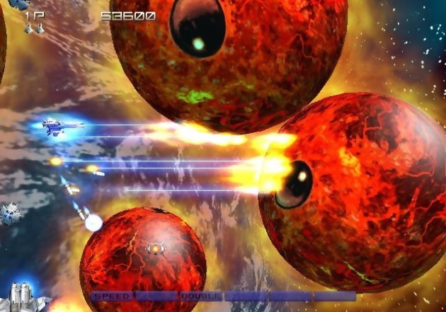 Populaire auprès des jeunes joueurs grâce à la série des Pro Evolution Soccer et autres Silent Hill, pour ne citer qu’eux, Konami s’était surtout fait connaître par le grand public dans le milieu des années 80 par ses shoot’em up. On se souvient notamment de Life Force Salamander et de sa difficulté impitoyable mais également de la série des Gradius dont il est question ici avec ce cinquième volet. Conscient de l’échec cuisant de Gradius III & IV sur PS2, aussi bien sur le plan commercial que sur le plan artistique, Konami a donc décidé de remettre le projet Gradius V entre les mains magiques de Treasure. Jeune société japonaise créée au début des années 90, Treasure s’est récemment démarqué de ses pairs pour avoir enfanté un certain Ikaruga, le shoot’em up vertical encensé par la profession et sorti sur Dreamcast puis sur GameCube.