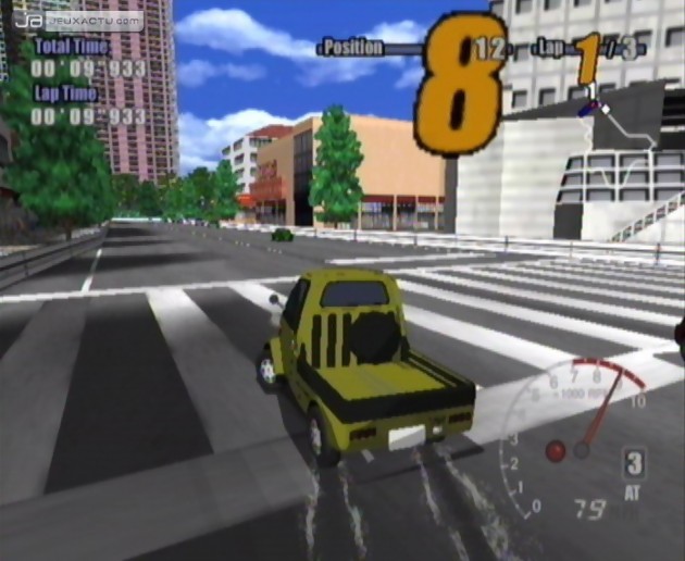 Situé quelque part entre Gran Turismo et Auto Modellista, GT Pro Series emprunte en effet divers aspects de ces deux jeux de course ayant marqué leur époque. Gran Turismo pour son système de progression et Auto Modellista pour sa réalisation faite de cel-shading. Sur le papier, l’idée de repomper ces deux titres n’est pas mauvaise mais le résultat est malheureusement loin d’être au même niveau. Graphiquement pour commencer, la réalisation de GT Pro Series nous renvoie subitement dix ans en arrière, avec des textures complètement dépouillées, un aliasing persistant et une modélisation approximative des véhicules. Certes les différents modèles des marques présentes (ASL, Daihatsu, Honda, Mazda, Mitsubishi, Mitsuoka, Nissan, Subaru, Suzuki et Toyota) sont reconnaissables mais il faut bien admettre que le résultat final est loin d’avoir fait l’objet d’un travail de fond. On pourrait alors se dire qu’il est préférable de passer par la case "tuning" pour donner un meilleur coup de crayon aux voitures, mais là encore, les différents accessoires manquent singulièrement de folie pour en faire des bolides de rêve. Si le titre affiche plus de 80 modèles différents, le nombre de circuits est loin d’être aussi performants, d’autant que la variété des environnements fait également peine à voir.