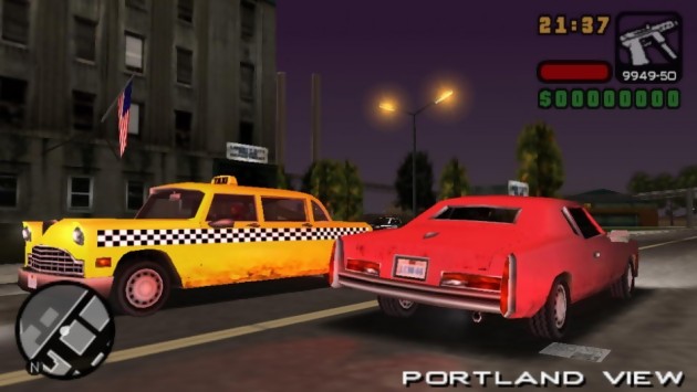 Surtout qu’au niveau gameplay et plaisir de jeu, la conversion PS2/PSP a été idéalement pensée, voire même améliorée. On pense notamment au temps de chargement initial qui est bien plus court que sur PlayStation 2 grâce à une division intelligente de la ville. En effet, la ville et les stations de métro souterraines bénéficient de leur propre loading, ce qui évite une surcharge de travail pour la console. Mais le plus important concerne bien entendu la maniabilité, car si la PSP est assez proche dans l’idée de la Dual Shock, il lui manque quelques boutons et un stick analogique pour afficher toutes les actions réalisables sur la console de salon. La moitié droite de la PSP propose la même configuration que pour tous les opus de la série à savoir le saut, la course (même avec une arme comme le fusil ou le lance-roquettes), l’emprunt de véhicule et le tir, pour les phases à pied ; et l’accélération, le freinage et la restitution de véhicule pour la conduite. Bref, on est en terrain connu surtout qu’à cela le héros répond au doigt et à l’œil comme à l’habitude car tous les mouvements sont gérés via la pastille analogique. Le R sert à déraper aux freins à main ou à locker un ennemi, tandis que le L permet à la fois d’affiner la visée mais aussi de basculer la caméra à droite ou à gauche à bord véhicule lorsqu’il est associé au stick. Pour un meilleur confort, je vous recommande de modifier juste cette configuration afin que les L et R affichent les angles de caméra de côté. Le frein à main, quant à lui, se retrouvera en appuyant sur Croix + Carré en même temps. Ceci améliorera grandement votre appréciation de la route lorsque vous devez faire feu depuis votre bagnole ou votre bécane. Enfin la croix multidirectionnelle comprend différentes actions annexes comme la sélection de radios – nouvelles soit dit en passant – le changement d’armes ou de cibles, l’activation ou la désactivation de missions annexes et la visée manuelle.