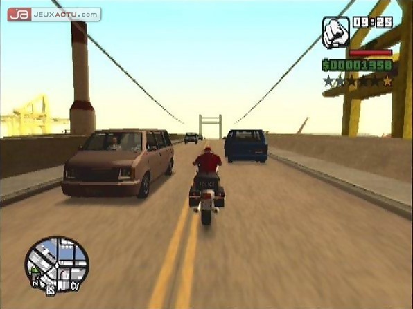 Si vous vous attendiez à une révolution graphique, alors GTA : San Andreas vous décevra. Si les personnages ont gagné en finesse avec des contours moins cubiques et des mains qui ne ressemblent plus à des moufles polygonaux, le reste du jeu fait dans l’épuré. Les textures sont plutôt simplistes et on n’échappera pas au vilain clipping qui se dresse à l’horizon, ce qui risque d’énerver les joueurs les moins conciliants. Toutefois, ne crachons pas dans la soupe sans avoir trempé son pain dedans car Rockstar North a pris le temps de cuisiner le jeu avec amour. La réalisation graphique du soft se juge sur son ensemble et l’équipe de Rockstar North a poussé encore plus loin les limites de la PS2. GTA : San Andreas arrive donc en terrain conquis et le joueur n’aura pas trop de mal à retrouver ses marques tant le système de jeu n’a guère changé. Les commandes s’opèrent, à peu de choses près de la même façon et la liberté d’action est ici décuplée. Comme on le disait plus haut, Tommy Vercetti n’est plus. Celui qui fut doublé par un magnifique Ray Liotta a troqué son accent sicilien par le phrasé d’un dénommé Carl Johnson, interprété par un certain Young Maylay. Mais appelez-le CJ (prononcez Ci Jay) si vous souhaitez faire ami-ami avec lui. Son retour dans son quartier natal après cinq ans d’absence passé à Liberty City (notre ville terne et morne de GTA III) est loin d’être festif. Non seulement CJ apprend que sa mère a été assassinée par un gang rival mais en outre, il va devoir se soumettre à un contrôle de police plutôt musclé dès son arrivée à l’aéroport. Maltraité puis dépouillé par ces agents de la paix visiblement corrompus jusqu’à la moelle, CJ est finalement éjecté de la voiture de patrouille comme un malpropre. Un vélo de type BMX se dresse devant lui. Une aubaine pour CJ qui décide de l’enfourcher et retourner au plus vite pour retrouver les membres de sa famille dans le but de leur demander quelques explications.