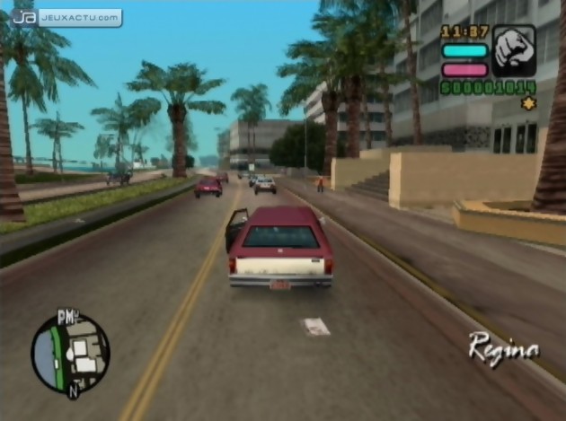 Si vous vous souvenez de l’agencement de GTA : Vice City, Fort Baxter se situe sur la seconde île du jeu sorti sur PC, PlayStation 2 et Xbox, celle qu’il fallait débloquer après quelques heures de jeu ou involontairement à cause d’un bug du jeu. Et c’est donc dans la zone de Downtown, Little Haïti, Little Havana et de l’Aéroport International Escobar que vous allez redécouvrir la ville. Encore une fois, les développeurs de Rockstar Games ont opéré à quelques modifications esthétiques histoire d’avoir l’impression d’évoluer dans une nouvelle ville. Mais du fait que les évènements se déroulent quelques années seulement avec GTA : Vice City, les modifications ne sont pas aussi flagrantes que dans Grand Theft Auto : Liberty City Stories. Quelques buildings ici ou là. Une ou deux constructions annonçant les futurs buildings que visitera Tommy Vercetti. Autant dire que si au détour d’un virage, on peut être surpris, en règle générale on retrouve très vite ses repères et aussitôt la première bagnole volée on part illico presto sur la petite île de Starfish Island voir la future résidence de Tommy Vercetti en espérant découvrir une bonne planque. Hélas, elle n’est pas vôtre et vous devrez vous contenter du petit appartement de Vice Port. Bien entendu, plus vous progresserez dans le jeu, plus vous débloquerez de cachettes. En attendant, vous vous baladerez afin de remarquer les quelques ajouts apportés par Rockstar Games. Commençons par les véhicules. Déjà impressionnant en 2002, le titre récupère quelques engins qui ont fait leur preuve, notamment dans Grand Theft Auto : San Andreas. C’est ainsi que l’on retrouve le BMX, le Jet-ski ou le Quad aux côtés des motos, des bateaux et des hélicoptères. Peu importe votre moyen de locomotion, vous remarquerez que certains designs ont changé et que de nouvelles marques ont fait leur apparition.