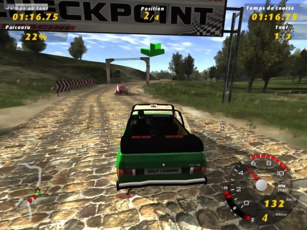 En tant que fétichiste des Twingo, c’est avec un regard complètement vierge que j’aborde ce jeu. Après une longue installation, je me retrouve au volant d’une voiture complètement inconnue mais qui de par sa forme n’est pas très éloignée de ce fleuron français que le monde entier nous envie : la Twingo. Graphiquement, tout est à sa place. Les premiers niveaux se déroulent en Bavière mais le jeu nous permet également de faire des excursions dans le sud de