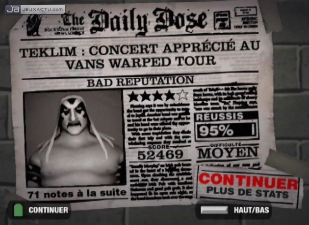 Si la marge de progression de Guitar Hero II est toujours aussi grande, on se rend rapidement compte que le niveau a augmenté d’un cran. Est-ce en rapport avec les morceaux choisis ou la perte de ses repères après avoir laissé moisir sa gratte pendant près de six mois dans la cave ? Un peu des deux peut-être mais il faut bien avouer que certains solos de Guitar Hero II demandent une grande maîtrise et une connaissance parfois quasi parfaite du morceau pour espérer s’en sortir les doigts dans le pif. Pas de problème ! Les concepteurs ont pris le soin d’améliorer la section Entraînement qui permet désormais de répéter un morceau ou un passage précis jusqu’à que réussite s’en suive. Il s’agit d’un mode "Répétition" qui offre également trois types de vitesse. De quoi bien s’exercer avant de franchir le cap du mode "Expert", le vrai challenge de n’importe quel guitariste digne de ce nom.