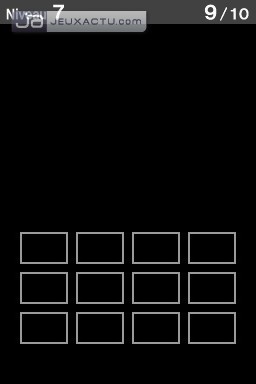 Plus concrètement, Gym des Yeux : Exercer et Relaxer vos Yeux reprend la recette des Programme d’Entraînement Cérébral du Dr. Kawashima et autres English Training. On a donc droit à une évaluation quotidienne piochant dans les exercices également disponibles séparément pour s'entraîner. L'évaluation favorise tel ou tel type d'épreuve selon le résultat d'un test préalable évaluant votre âge oculaire. Oui, oui, vous avez bien lu. Alors évidemment, au premier passage, on se récolte forcément un chiffre délirant, votre cobaye s'étant vu décerner un démoralisant "60 ans". Mais au fil des jours, on s'améliore pour approcher un résultat beaucoup plus en adéquation avec son âge physique. Ouf ! Il existe deux catégories d'épreuves : intellectuelles et sportives. En intello, on a un boneto, des chiffres à mémoriser très rapidement, des symboles à repérer très vite, des carrés à toucher le plus vite possible avec le stylet... Du côté sportif, il y a de la boxe (toucher les gants de l'entraîneur), du volley-ball (toucher le ballon quand il est dans une zone particulière), du ping-pong (assurer 40 échanges en déplaçant la raquette au stylet), ou bien encore du basket-ball (toucher ses équipiers qui apparaissent en blanc un court moment au début)... Au total, ce ne sont pas moins de 17 exercices relativement agréables qui constituent autant de petits défis à relever régulièrement si on veut progresser. Le jeu nous propose même après chaque évaluation de faire quelques étirements des yeux, en suivant les instructions. Alors au début, il faut avouer que c'est plutôt sympathique, mais comme d'habitude, ça devient assez vite répétitif. Et surtout, l'intérêt paraît nettement moins flagrant que l'Entraînement Cérébral. Quant aux progrès qu'il nous permet de réaliser, difficile de juger de leur réalité. C'est après plusieurs semaines d'utilisation quotidienne qu'on pourrait vraiment dire s'ils existent ou pas.