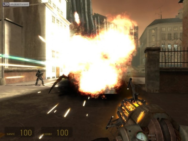 Uniquement armé de son gravity gun - l’arme préférée des joueurs dans Half-Life 2 mais qui fait beaucoup moins d’effet que par le passé – Freeman va donc devoir jongler avec les objets et autres matériaux qui l’entourent pour résoudre les (quelques) énigmes qui se dressent face à lui mais également pour se défendre et attaquer les zombies et autres soldats envoyés par les dirigeants de la Cité 17. Fort heureusement, Alyx est là aux côtés de Freeman, l’homme qu’elle aime et qu’elle accompagne / escorte / guide (au choix) partout, un peu comme un toutou suivrait son maître à la trace. Un peu maladroite dans ses déplacements avec un pathfinding pas toujours intelligent (bloquer une issue fait partie de ses spécialités), Alyx reste néanmoins un allié de taille et plus d’une fois elle sera d’une aide précieuse à Gordon. Boosté à l’adrénaline, Alyx ne craint rien, tant et si bien qu’on n’a nul besoin de s’inquiéter pour elle lors d’un affrontement et qu’on peut lui plomber les fesses sans qu’elle s’écroule au sol. Bon, de temps en temps elle se met à gémir mais rien de bien grave. A l’inverse, certains peuvent trouver son cri existant. Half-Life 2 : Episode One est assurément un jeu pour adultes.