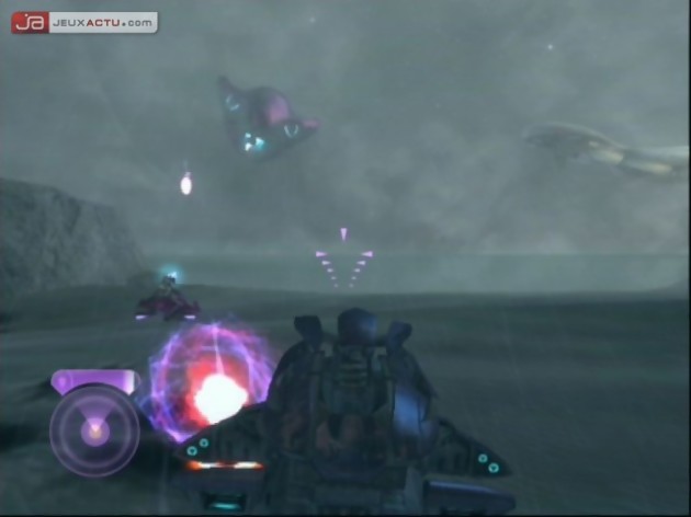 Et cette fin arrive assez vite malgré tout puisque 10 heures sont amplement suffisantes pour finir le jeu en mode normal si vous avez l’habitude des FPS sur Xbox. Ceci étant connu, mieux vaut commencer en mode Héroïque pour que le challenge vous prenne suffisamment de temps. Le mode Légendaire est toujours de la partie mais propose une difficulté phénoménale à tel point qu’elle peut être rebutante même si vous aviez fini le premier Halo dans ce mode de jeu. Votre armure vous protège à peine, les grenades et munitions sont très rares et les ennemis particulièrement redoutables. Bref, vous n’en verrez pas la fin. Et à propos de fin, c’est là que réside le gros point noir d’Halo 2. En effet, après une progression incroyable dans l’intensité des missions, la conclusion du jeu laisse pantois… Jamais l’image du soufflé qui retombe à plat n’avait été aussi appropriée pour retranscrire l’impression qui nous saisit à la vue du générique de fin. On a réellement l’impression qu’il manque quelque chose au jeu puisque après un dernier combat relativement facile, on a droit à une conclusion ouverte sans véritable intérêt si ce n’est de nous pré-vendre un éventuel Halo 3. De plus, en y réfléchissant de plus près, on se rend compte qu’aucune des questions que l’on pouvait se poser à la sortie du premier Halo ne trouve réellement de réponse dans cette suite. Oubliez également le trailer de l’E3 avec le bombardement de la Terre, vous n’en rouverez nulle trace dans le jeu. Ce goût d’inachevé reste un sacré moment en bouche tant un scénario entièrement maîtrisé aurait pu faire d’Halo 2 le plus grand jeu d’action de tous les temps sur une console. Une fois cette déception digérée, le plaisir reste toutefois le plus fort à tel point qu’on s’empresse de recommencer l’aventure ou de passer à un autre gros morceau, le jeu à plusieurs.
