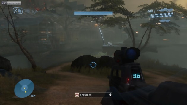 C’est ainsi que commence la première mission du jeu. Aider les survivants de l’armée UNSC en éliminant les forces Covenants implantées sur notre planète. Et c’est aussi l’occasion de découvrir, enfin, la campagne solo et sa réalisation graphique tant décriée pendant la phase de bêta-test multijoueur du jeu. On tient à vous rassurer tout de suite, il y a du mieux. Cependant, n’espérez pas découvrir un jeu de la trempe d’un BioShock. Halo 3 en est loin, tout simplement parce que l’environnement s’y prête très mal. Ici, on n’est pas dans un FPS de couloirs tel que Doom, même si plusieurs niveaux se dérouleront exclusivement à l’intérieur des bâtiments. On commence donc par une forêt luxuriante, scène de jeu idéale pour découvrir tous les effets next-gen rajoutés par Bungie. L’eau, les reflets sur les rochers, la luminosité du soleil couchant, les armures des soldats humains, des aliens, ou de notre Master Chief, tous ont eu droit à leur coup de bistouris pour un résultat appréciable. La modélisation des ennemis a gagné en finesse, alors que les expressions faciales des humains auraient mérité plus d’attention de la part des développeurs. Seuls les personnages principaux sont en nette amélioration en terme de détails, tout comme les cinématiques et cut scenes moins granuleuses que dans Halo 2. Mais en règle générale, le level design est souvent inégal, surtout si l’on compare les environnements extérieurs au décor intra-muros de certains bâtiments. En pleine nature, c’est le champ de vision qui nous surprend encore, bien qu’il s’agisse toutefois de la marque de fabrique de la série. Tantôt envoûtant, tantôt mystérieux, l’éclairage contribue énormément à se plonger dans l’intensité des affrontements ; chose beaucoup moins présente lorsque l’on pénètre à l’intérieur d’un bâtiment. Hormis quelques effets de lumière et des couleurs un peu flashies ici ou là, on reste perplexe face à certaines textures modélisées de façon grossière, et au manque d’originalité évidemment. Vous allez répondre que c’était déjà le cas avec Halo : Combat Evolved et Halo 2, et ce n’est pas faux. Mais au bout de cinq ans, on commence à faire une overdose de ces mêmes couloirs métalliques. On en reviendrait presque à se demander si Bungie n’a pas cédé à la facilité pour la création du level design. A ce propos, si les levels sont majoritairement beaucoup plus vastes avec une multitude de passages, ils restent néanmoins assez linéaires et obligent parfois à quelques longueurs de jeu inutiles. Mais le plus agaçant dans l’affaire, c’est que l’on vous obligera régulièrement à faire des allers-retours dans un même lieu et, évidemment, massacrer de nouveaux ennemis pour atteindre un nouvel objectif. On aurait aimé plus d’originalité dans ce domaine-là, car le principe des missions a si peu évolué depuis les opus Xbox que l’on ne sera pas dépaysé, à pied ou à bord de véhicules.