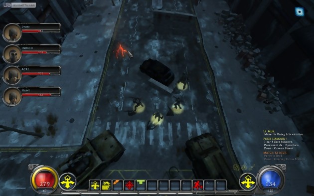 Le héros que vous créez en début de partie à l'immense privilège d'incarner cette main de fer dans un gant de métal. Bras armé d'une humanité presque condamnée, vous allez promener votre rage au travers de la cité en ruine, punissant tous les infidèles du tranchant d'une épée, ou d'une balle dans la tête. Cherchant à enrichir les univers médiévo-fantastiques si chers aux hack & slash, Bill Roper et ses sbires ont eu l'excellente idée de créer un futur où rituels cabalistes, templiers et armements automatiques lourds s'expriment joyeusement dans une belle orgie sanglante. Quelles que soient les méthodes de destruction que vous affectionnez, vous trouverez donc ici largement de quoi satisfaire vos pulsions morbides. Les accros au surnaturel opteront pour un invocateur ou un mage; les adeptes de la technologie arrêteront plutôt leur choix sur un tireur d'élite ou sur un ingénieur; enfin, les vraies guerriers, ceux qui aiment sentir le souffle fétide de la mort sur leur armure lustrée, chercheront le contact en prenant les commandes gardien ou d'un maître d'arme. Outre l'équipement, forcément différent pour chacun, ces héros disposent tous d'un arbre de compétences spécifique, que vous renforcerez au fil de vos meurtres et quêtes. Le développement du héros est, comme toujours, au coeur de l'action, et votre principal objectif d'un bout à l'autre de la partie consistera à obtenir plus d'expérience pour gagner toujours plus de points d'aptitude et de caractéristique. La progression est régulière, et vous n'aurez pas, dans un premier temps du moins,  à jouer pendant 35 heures pour faire monter votre brute d'un misérable petit level. Bonheur supplémentaire, à l'instar de Loki, la mort n'est pas pénalisante. Sur votre première partie solo, une chute au champ d'honneur ne sera pas synonyme de perte de points d'XP. Au pire, et si vous souhaitez ressusciter à l'endroit même où vous êtes tombé, vous devrez débourser une somme de palladium, la monnaie locale, proportionnée à votre niveau.