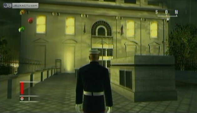 Evidemment, plus vous changez de vêtements, plus les cadavres s’amoncellent et il faudra ruser pour en évacuer un maximum. Soigneusement rangés dans un container ou balancés par-dessus une balustrade en faisant passer leur mort pour un simple accident, les techniques sont multiples. Mais une fois de plus, surveillez vos arrières et prenez garde aux caméras de surveillance qui pourraient vous jouer des tours faisant grimper le niveau d’alerte. D’ailleurs, une jauge à l’écran vous indique le taux de surveillance du niveau. Vert, jaune et rouge, pas besoin de vous faire un dessin pour en comprendre les aboutissements. N’hésitez donc pas à changer régulièrement de tenues ou à vous calfeutrer dans un placard histoire de réduire cette jauge. Cependant il vous sera parfois difficile de planquer correctement un macchabée. Vous le remarquerez grâce à un découpage de l’écran façon 24H Chrono. Ce multifenêtrage vous annoncera également les moments critiques ou propices d’une mission. Et comme on dit après l’heure, c’est plus l’heure auquel cas vous devrez réviser vos plans.