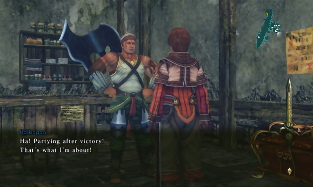 Mais un système de combat, aussi bon soit-il, ne suffit pas à faire un très bon jeu; même soutenu par un très bon Motoi Sakuraba. Tout le problème d’Infinite Undiscovery est qu’il manque cruellement de liant, de cohérence. Le contraste entre la terrible longueur et le vide narratif d’un côté, et la frénésie et la richesse dont pourraient jouir les combats de l’autre, n’est qu’un des nombreux paradoxes du titre. En effet, comment expliquer ce cloisonnement, ce refus de l’aventure, de l’exploration, cette superficialité dont souffre le titre de tri-Ace ? La matière ne manque pourtant pas pour développer et donner une ampleur autrement plus ambitieuse à l’univers. Tourner en rond, dans une poignée de villages et de châteaux avec une vingtaine de personnages, est vraiment trop léger. Surtout quand on nous demande de rebrousser chemin, histoire de ne pas avoir à s’enquiquiner avec un background trop conséquent à créer, et un trop plein d’environnements à modéliser. De la même manière, on a un peu l’impression que le titre tente de meubler en donnant de l’importance à des évènements de seconde zone (l’escorte des villageois, puis la disparition de Leif dans le désert), alors que l’intrigue principale n’est que survolée pendant une très grosse partie de l’aventure. On regrettera également les facilités dont ont usé les développeurs dans le level design, ce qui a pour conséquence de rendre certains passages répétitifs dans pas mal de donjons, ou véritablement tordus (Cobasna Timberlands et sa multitude de portails de téléportation). En tout cas, une chose est sûre : Infinite Undiscovery a manqué de quelque chose, et pas que d’une traduction française, ne serait-ce que textuelle.