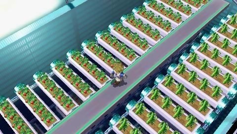 Votre première préoccupation réside donc naturellement dans l'apprentissage du geste auguste du semeur. Votre coquille vide d'avatar, prête à se remplir de l'humanité qui l'entoure, emménage dans un lieu qui ne fait plus l'obsession des autochtones, les Ruines de Pâques, dont le toit est composé d'une immense surface cultivable. Pourquoi se fatiguer à récolter courges, maïs et tomates disponibles au supermarché du coin ? Pour le fun. A vrai dire, le travail de récolte n'influe pas directement sur votre progression, la clé du jeu résidant dans la récupération de cristaux de couleurs, lesquels serviront à élargir votre surface cultivable, et donc à cajoler dans le sens du poil les esprits fâchés. S'il est donc intéressant de s'activer à la tâche au moins pendant la première année, histoire de découvrir les caractéristiques de la saison en cours (en dehors de vos cultures, la nature vous tend naturellement quelques victuailles, notamment durant l'automne) la suite du jeu dépendra plutôt de votre humeur. C'est à partir de ce moment que les maintenances hebdomadaires chez le Docteur Théo (prétextes à déclencher des événements spéciaux) prennent fin et que votre gentil cyborg devient en quelque sorte indépendant. Il ne tient qu'à lui de prendre conscience du monde qui l'entoure, et de faire attention au calendrier, car plus personne ne viendra vous prévenir que la fête de Noël a lieu le 24 décembre. En dehors des cultures, du bétail, de la récolte, et de l'exploration, il existe quelques tâches annexes, toujours destinées à accroître vos compétences humaines, comme la cuisine. Il suffit pour cela de suivre chaque semaine les émissions culinaires sur votre superbe écran plasma (les paysans aussi ont droit à la HD) et imiter les recettes plusieurs fois jusqu'à parvenir à quelque chose de digeste. L'objectif sous-jacent est donc de développer vos traits de caractère et de conscience grâce à un sain labeur quotidien et en traversant divers événements.