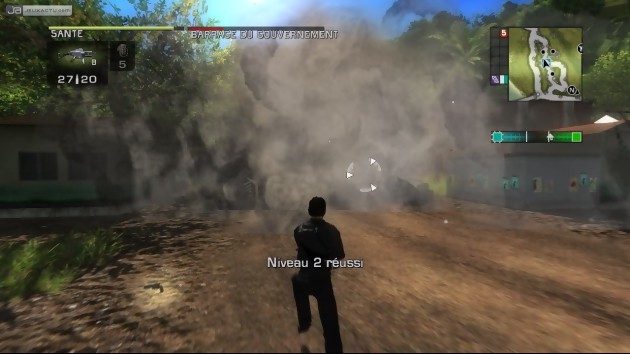 Mais à la différence du titre de Volition, la conduite de Just Cause ne réussit pas vraiment à nous convaincre pour de multiples raisons.  La première, bien qu’anodine, est indissociable des 1024 km² à parcourir. La mini-carte affichée en haut de l’écran n’est pas très lisible et surtout ne propose qu’un gros point rouge pour seule indication lorsque vous activez une mission et que vous devez vous rendre à bon port. Et donc régulièrement, on ouvrira le sous-menu pour mieux appréhender les itinéraires à prendre. A ce moment-là, on se rend vite compte du peu de routes disponibles tant et si bien que le hors-piste semble être la meilleure solution jusqu’à ce vous vous retrouviez coincé face à un flanc de montagne au dénivelé impressionnant et impossible à gravir à pied ou en bagnole. Cette mauvaise gestion du level-design nous pousse à laisser tomber les véhicules terrestres au profit des escapades aériennes aux commandes d’un hélicoptère ou d’avion privé avec lequel on n’a plus de soucis pour rejoindre un point B. Il aurait été plus judicieux tout de même de nous glisser une option GPS à la Test Drive Unlimited pour donner plus d’intérêt aux balades automobiles.