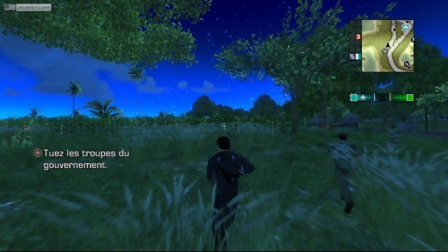 Vous aurez du pain sur la planche avant d’arriver à toucher la pointe du gouvernement car San Esperito n’est pas un de ces petites îles dont on fait le tour en quelques heures, Stilwater si tu nous entends. Avalanche Software nous propose pas moins de 1024 km² de surface exploitable sur terre, sur mer ou dans les airs. Premier point fort du soft, votre zone de jeu est identique par les chiffres à celle de Grand Theft Auto : San Andreas. Autrement dit, vous en aurez pour votre argent et la visite touristique de San Esperito vous en mettra plein les mirettes qu’il s’agisse de ses forêts verdoyantes, de ses plages paradisiaques, de son volcan majestueux ou de ses pueblos atypiques. L’archipel est très vaste et c’est d’autant plus important que vous pouvez voyager à votre guise avant, pendant ou après les missions que vous activerez afin de libérer le pays du joug de son dictateur. De ce fait, les développeurs ont pensé à intégrer un maximum de véhicules pour que vos promenades soient le plus diversifiées possible. Plus de 90 moyens de locomotion sont mis à votre disposition : mobylettes, scooters, bus, voitures, motos, 4x4, pick-up, jet skis, hélicoptères, tractopelles, bateaux, camions, avions… Une liste qui pourrait bien faire un paragraphe entier et c’est tant mieux car de cette façon, on n’en ressort pas frustré comme pour Saints Row.