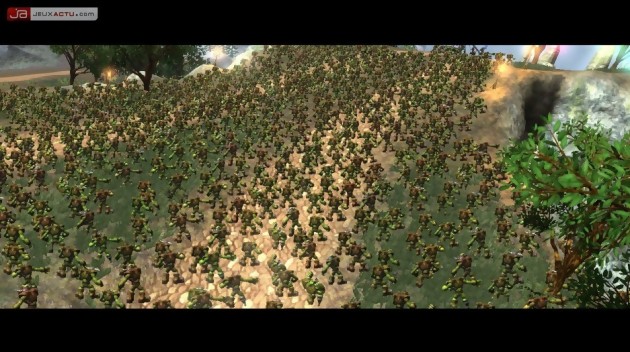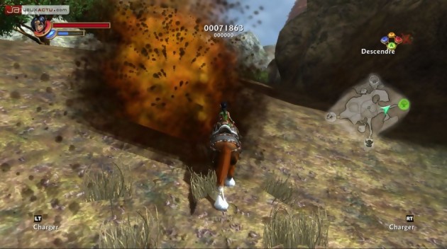 Tout cela donne à Kameo un gameplay réellement riche où l’action ne cesse de se renouveler. Dans les phases de combat pur, vous ferez de préférence appel à Frappedur le bien nommé qui, à force de directs et d’uppercuts, remplira une jauge qui, une fois pleine, vous permettra d’enclencher un mode semblable au bullet time. Vous pourrez alors assommer bon nombre d’orques et les reprendre de volée afin de faire perdurer cet effet. Plus fort encore, dans la peau de l’héroïne, vous aurez droit à des scènes parmi les plus spectaculaires jamais vues sur une console. Imaginez-vous chevauchant au milieu d’une bataille phénoménale opposant des milliers d’orques et humains avec des passages de dragons et des bombardements de catapultes en toile de fond, le tout sans aucun ralentissement à l’écran ! Ces phases sont absolument incroyables, à tel point qu’on est souvent tenté de faire demi-tour pour retraverser le champ de bataille de part en part alors que le devoir vous appelle en d’autres lieux. En parallèle à ces séquences d’action pure, il vous faudra également parfois réfléchir afin de débloquer une situation donnée. Face à un ennemi hors du commun, il faudra aussi employer certaines ruses et, si jamais vous veniez à coincer, votre livre/conseiller sera alors présent pour vous aider graduellement au fil de vos échecs. Le jeu reste, de ce fait, d’une difficulté très abordable, les joueurs attirés par les challenges plus élevés pouvant parfaitement bloquer l’aide. Mélangeant action, adresse, réflexion, vues à la première et à la troisième personne, Kameo ne fait vraiment l’économie d’aucun type de gameplay, le tout sans aucune baisse de rythme. Tout cela est bien servi par une maniabilité sans faille, sauf peut-être pour les phases sous-marines avec Grand Bleu sans que je sache si le problème venait de moi ou du jeu. Quoi qu’il en soit, même dans les zones les plus larges ou les plus étroites, le système de caméras ne pose jamais de souci, la jouabilité étant quasiment sans failles.