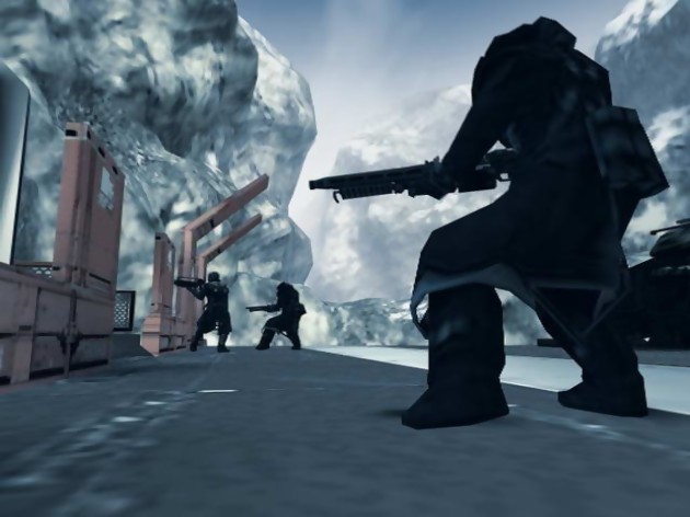 L’autre grand reproche que l’on peut faire vis à vis de Killzone (chose que nous avions au préalable évoqué dans notre preview) est l’abondance de bugs. Si la version finale en comporte moins que la preview, il n’en reste pas moins que le titre de Guerrilla est truffé d'incohérences en tout genre ! Des textures qui disparaissent ou apparaissent soudainement au clipping assez phénoménal dans les environnements ouverts (l’herbe pousse à vue d’œil !) en passant par des bugs de collision fréquents (il est possible de pénétrer à l'intérieur du corps de vos co-équipiers, comme en témoigne l'image juste au-dessus) sans oublier un frame-rate désastreux, on a en permanence le sentiment que la PS2 va nous claquer dans les doigts à tout moment. Alors oui, Killzone est un jeu qui en jette esthétiquement. Le design des Helghasts fait irrémédiablement pensé aux soldats sortis tout droit de Jin-Roh, le film d'animation réalisé par Hiroyuki Okiura. Guerrilla n’a pas lésiné sur les effets pyrotechniques c'est certain mais à force de trop vouloir en faire, la pouliche de Sony a du mal à suivre cette cadence effrénée. C’est là qu’on se rend compte que la console arrive à saturation et que les 32 Mo de mémoire vive ne suffisent plus. Mais la présence de bugs n’est pas le seul souci à Killzone. Le gameplay proposé est à des années lumière de ce qui se fait actuellement dans le genre. Alors que des titres tels que Halo, Call of Duty, Half-Life 2 s'efforcent de faire avancer le schmilblick, Killzone le fait tout simplement reculer. Ultra linéaire et dirigiste, le jeu nous propose finalement que deux choses : avancer et tirer sans réflexion aucune ! Il y a cinq ans, peut-être que ce type de gameplay serait passé comme une lettre à la Poste mais à l’aube où le jeu se veut de plus en plus interactif et propose des expériences vidéoludiques toujours plus poussées, Killzone est une sorte d’aberration. Pire encore ! L’intelligence plus qu’artificielle des ennemis prête à sourire. Les Helghasts ont cette fâcheuse tendance à se déplacer en troupeau, les uns à la suite des autres, faisant d’eux des cibles faciles. Une petite pression sur la gâchette pour mettre en route la mitraillette ou tout simplement le shotgun et vous verrez deux voire trois Helghasts se fracasser en même temps la mâchoire au sol. Même chose lorsque vous vous amusez à lancer une grenade dans la foule. Si les ennemis s’éparpillent pour éviter de se prendre l’objet en question en pleine poire, il n’est pas rare de les voir s’éloigner de quelques petits mètres, pensant être hors de portée de la déflagration et finissent finalement les quatre fers en l’air. Par moments, il arrivera que certains sons tels que des bruitages se fassent la malle, laissant ainsi place à un vieux silence de mort. On rigole, on rigole mais c’est assez triste de voir à quel point ce jeu est loin d’être achevé. Et ce n’est pas la lenteur des déplacements, du temps que votre personnage met à recharger son arme ou bien encore l’ajustement chaotique du zoom de votre sniper qui vont changer la donne. Le gameplay de Killzone est une aberration, on vous l’a dit !