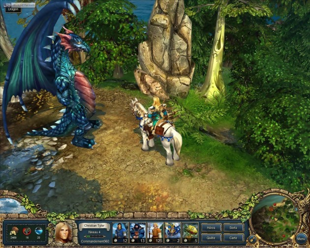 Comme dans la plupart des hack & slash, le développement du héros s'effectue à travers trois arbres de compétences (puissance, esprit, magie) qui influent grandement sur ses capacités. Naturellement, les objets d''inventaire revêtent également une certaine importance. Plus étonnant, ils se voient secondés par la possibilité de se marier et d'engendrer des enfants ! Avoir une femme apporte un bonus (qui dépend de la donzelle en question) et quatre cases d'inventaire supplémentaires... qui au final pourront être occupées par les descendants, également sources de bonus. Si l'envie vous en prend, vous pourrez même divorcer et abandonner tout ce beau monde, pour mieux recommencer avec une autre ! Mais attention, la femme délaissée emmène non seulement sa progéniture, mais également un cinquième de votre or... Les développeurs ne manquent manifestement pas d'humour ! D'ailleurs, ils assument sans sourciller tous les clichés de l'heroïc-fantasy, et les détournent même régulièrement au profit de situations qui font souvent mouche. Riches, nombreux et bien écrits, les dialogues ne manquent pas de piquant et permettent même parfois de résoudre certaines quêtes autrement que par le combat. On n'en attendait pas tant ! Hélas, ces dialogues se voient quelque peu malmenés par une traduction en dents de scie qui, si elle assume globalement plutôt bien le flot de textes, se prend régulièrement les pieds dans le tapis. Outre les "inévitables" fautes de frappes, d'orthographe ou de grammaire, on y trouve également quelques incohérences (un personnage appelé une fois Iron Richard , une fois Richard Dacier, la "boîte enragée" qui devient parfois la "boîte de rage"...). Et, tel un furoncle sur le nez d'une jolie princesse, le comble est atteint avec la traduction erronée de "turn" en "tourner". "Tourner 1", "Tourner 2" affiché en gros à chaque nouveau tour de jeu, ça la fout un peu mal...