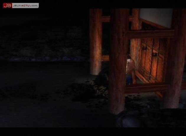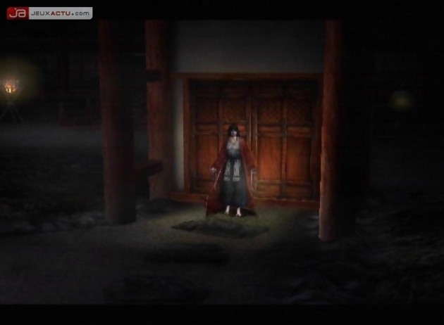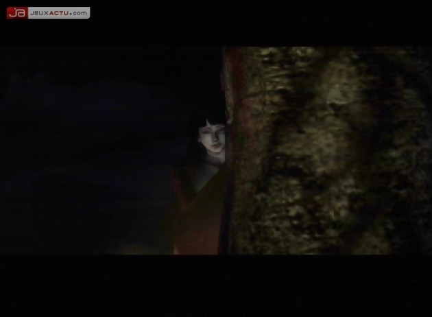 Malgré son atmosphère on ne peut plus lugubre et son utilisation pertinente de la lumière, beaucoup de joueurs disent ne pas avoir peur en jouant à Kuon. Je pense surtout que le jeu de Tecmo suit à la lettre les codes de l’épouvante japonaise : une angoisse portée par la seule imagination, tout juste aidée par de furtives apparitions. On est très loin des gros sursauts sonores qui accompagnent les apparitions surprises de la plupart des films d’horreurs occidentaux, vous savez ces gros "BOUM" qui font certainement bien plus bondir le spectateur dans la salle que le sujet lui-même. Point d’énormes monstres baveux surgissant de nulle part non plus, ici la tension monte de façon bien plus subtile et diffuse. Des silhouettes fantomatiques à peine distinctes s’évaporant en arrière plan, et tout ce genre de détail basé sur la vision, sur les symboles et sur la suggestion. Bref, le travail sur l’ambiance est loin d’avoir été négligé, et fait même écho à merveille aux ficelles cinématographiques locales que l’on retrouve avec joie dans une production ludique. Un jeu qui ne se contente d’ailleurs pas de suggérer puisque l’hémoglobine coule à flot. Kuon accuse cependant une année de retard par rapport à sa sortie au Japon, même si comme nous l’avons vu les carences profondes du titre n’ont rien à voir avec sa réalisation, mais davantage au manque d’expérience des développeurs en matière de Survival Horror.