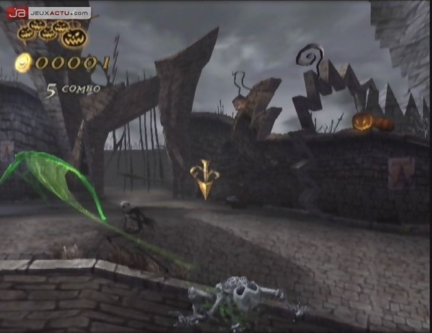 C’est en grande partie le plaisir de découvrir de nouvelles musiques qui poussera le joueur à progresser le long d’une production qui a du mal s’installer dans une catégorie. En tant que jeu d’action, L'Etrange Noël de Monsieur Jack : La Revanche d'Oogie apparaît répétitif, avec son bestiaire peu varié et des possibilités d’attaques bien faibles. En tant que jeu d’aventure, il peine à masquer une construction un brin décousue, si Oogie veut bien me passer l’expression. Mieux vaut également lui éviter d’endosser la casquette du jeu de plates-formes, car ici nous frôlons la catastrophe, avec une caméra imposée et une gestion des sauts complètement anecdotique. Jack à beau aimer se grimer, il n’est véritablement à l’aise dans aucun costume, même si on aurait pu écoper d’une arme bien moins sympathique que la Soul Rubber mise au point par les sauvageons de Capcom. Reste donc à évoquer les séquences boss : en accumulant suffisamment de notes de musiques au cour du combat, une jauge se remplit jusqu’à déclencher une séquence 100% rythm & game classique, dans laquelle il s’agit d’appuyer en rythme sur une série de touche pour soumettre définitivement la crapule.