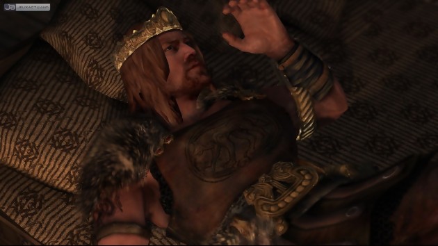 S’il est également adepte de la baston les testicules à l’air (dommage d’ailleurs que Tiwak n’est pas respecté à la lettre le combat face à Grendel), Beowulf excelle aussi dans l’art du combat à l’arme blanche. Epée, glaive, lance, fourche, hache et autres lames tranchantes, notre Danois n’hésite pas à pourfendre ses ennemis d’un geste brusque. A ces armes, il est possible parfois d’associer un bouclier, cassable lui aussi au bout d’un certain temps. Idéal pour se protéger des attaques ennemies, il permettent aussi de lancer des contres-attaques efficaces. Il existe donc plusieurs catégorie d’armes (à une ou à deux mains) et qui bénéficient chacune de leurs propres caractéristiques. A ce sujet, entre deux missions et un retour dans son havre de paix, il est possible de choisir le type d’armes et de boucliers avant chaque mission, mais aussi d’augmenter les performances de son personnage. Un côté RPG pas franchement indispensable mais plutôt bienvenu. Mais comme toutes les armes des Vikings, elles se dégradent au fil des combats et finissent d’ailleurs par rompre, obligeant le joueur à scruter l’horizon pour en dégoter une nouvelle. Heureusement, au fil de l’épopée, il est possible de débloquer des armes légendaires, plus résistantes et qui permettent d’infliger des dégâts encore plus importants. Les plus fainéants préfèreront voler directement une arme à l’ennemi après l’avoir agrippé. L’empoignade est l’une des techniques les plus brutales dans le jeu et qui permet d’achever un ennemi de manière efficace, mais surtout en gros plan. Il existe d’ailleurs plusieurs manières d’achever son adversaire, proposées en fonction des touches qui apparaissent à l’écran. Affaiblir, lancer, écraser, tous les moyens sont bons pour que chaque affrontement finisse dans un bain de sang ou dans un requiem d’os brisés. Kiffant. Coup de chapeau d’ailleurs aux développeurs qui sont parvenus avec brio à retranscrire toute la force et la lutte que l’on peut ressentir au moment de ces empoignades.