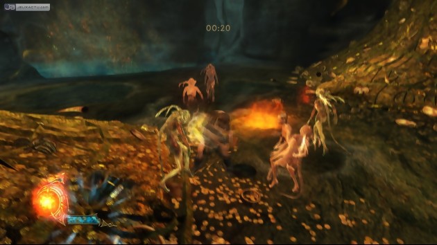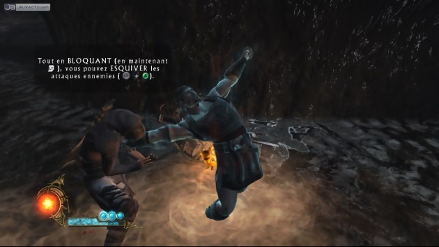 A première vue et selon quelques a priori, naturels il faut bien l’avouer, La Légende de Beowulf : Le Jeu ne semble être qu’un vulgaire jeu d’action s’appuyant sur une licence suffisamment forte pour exister. A première vue et selon le temps passé à tester le jeu, Beowulf semble marcher sur les traces d’un certain God of War, référence du jeu d’action / beat’em all depuis que son héros Kratos a été sacré Dieu de la Guerre en 2005. Il est vrai que la comparaison n’est pas fortuite, tant le titre d’Ubisoft / Tiwak s’inspire d’éléments repris du jeu de Sony Computer Entertainment. Mais réduire Beowulf à cette simple comparaison est une erreur que nous n’oserons pas faire, conscience professionnelle oblige. Car à l’inverse de Kratos qui ne sait se battre uniquement avec ses deux lames, Beowulf favorise davantage le combat à mains nues. Doté d’une force herculéenne, il est capable de mettre à mal des serpents de mer mais aussi d’autres créatures venues des entrailles de la Terre, juste en infligeant des coups bien placés. Il faut dire que notre barbare n’hésite pas à grimper sur le dos ou même sur la tête de ces monstres géants pour prendre l’ascendant sur le combat, à travers quelques séquences en QTE (Quick Time Event) qui ne sont pas sans rappeler God of War. Là où il suffisait d’appuyer sur le bon bouton au bon moment dans le titre de Sony pour sortir glorieux d’un rixe, ici il va falloir faire preuve de davantage de dextérité. Car en sus de faire preuve d’un bon timing, il faut également exceller dans l’art du matraquage de boutons pendant un certain laps de temps. Un exercice plutôt facile pour ceux qui ont l’habitude de jouer à Track’n Field.