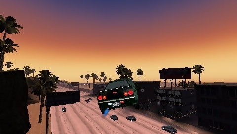 Un an après sa prestation sur consoles de salon, L.A. Rush déboule finalement sur PSP dans une version qu’on imaginait quasi identique. Seulement voilà, pour s’adapter au format miniature, les développeurs ont dû faire l’impasse sur certains aspects du jeu. Dommage qu’ils fassent partie des qualités du titre original…