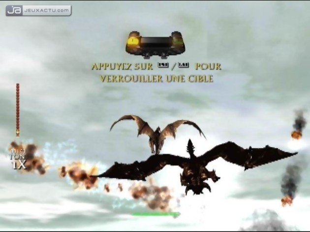 A cette confusion de la jouabilité s'ajoute une confusion de l'action. Les missions consistent bien souvent à détruire des cibles : catapultes, soldats, créatures fantastiques, éléments du décor... Seulement parfois, les objectifs ne sont pas bien clairs au milieu de dizaines, voire centaines d'unités à l'écran. Visuellement, les développeurs ont joué la surenchère, et c'est vrai qu'au début, ça impressionne, à la manière des combats du Seigneur des Anneaux. Mais encore faut-il savoir gérer tout ce petit monde ! Outre le fait qu'on n'identifie pas toujours bien ce qu'on doit attaquer (en pressant un bouton on peut afficher ses cibles en rouge, mais ce n'est pas très pratique quand on doit en plus bouger le pad et s'occuper des attaques), le moteur du jeu ne semble pas très bien supporter autant d'éléments à afficher, si bien que régulièrement, ça rame. Du coup, même si visuellement, malgré quelques faiblesses, ça peut paraître assez costaud, on reste sur une impression de médiocrité. Dommage ! Cracher du feu, c'est bien sympa mais notre dragon peut faire plus que ça ! En lockant un ennemi, il peut foncer dessus. Il s'agit ensuite soit d'appuyer sur les différents boutons pour le cramer ou le griffer par exemple, soit de se mettre à sa hauteur en orientant la manette puis la secouant dans sa direction pour le cogner. On a même droit, de temps à autres, à des petits Quick Time Events (QTE), pas très intéressants d'ailleurs... Mais globalement, l'action reste toujours floue, on a la dérangeante sensation que le hasard a son mot à dire, et donc d'être un peu exclu des affrontements, un comble !