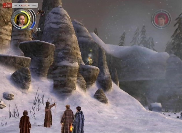Pour mettre sur pied l’adaptation vidéoludique du Monde de Narnia, Traveller's Tales n’a pas hésité à puiser ses inspirations à droite et à gauche. Un peu de Seigneur des Anneaux pour son côté beat’em all et ses cinématiques passant du réel au virtuel, un soupçon de Harry Potter pour la possibilité de permuter de personnage et d’autres détails qui font référence à des classiques du genre. Mais à force de piocher chez les autres, Le Monde de Narnia a oublié de se trouver une identité propre, celle-là même qui pourra le différencier des autres productions du genre. Aux commandes des quatre rejetons Pevensie, le joueur devra apprendre à switcher d’un personnage à un autre pour profiter de leurs aptitudes et ainsi avancer sans encombre. Frêle mais pas inutile, Lucy, la plus jeune des quatre, peut se faufiler dans les coins les plus étriqués afin d’activer un levier ou bien encore redonner un peu (beaucoup même) de santé aux autres si le besoin se fait sentir. Même s’il n’a pas la force de son grand frère Peter, Edmund reste un personnage idéal pour combattre les nombreux assauts des ennemis. Il peut également grimper aux arbres et autres lampadaires pour atteindre des bonus trop haut perchés. Vient ensuite Suzan, capable d’utiliser plusieurs artifices comme cette flûte de pan bien pratique pour endormir les trolls un peu trop costauds. Archer dans l’âme, Suzan pourra également abattre des ennemis à distance. Reste alors Peter, l’aîné du groupe, le personnage puissant prompt à tenir tête aux ennemis les plus féroces et doté d’une endurance à toute épreuve. Si le danger venait à devenir trop critique, il sera possible d’allier les forces de nos quatre héros en leur demandant de travailler en tandem. Les coups se révèlent alors plus puissants et certains obstacles ne sont surmontables qu’en duo.