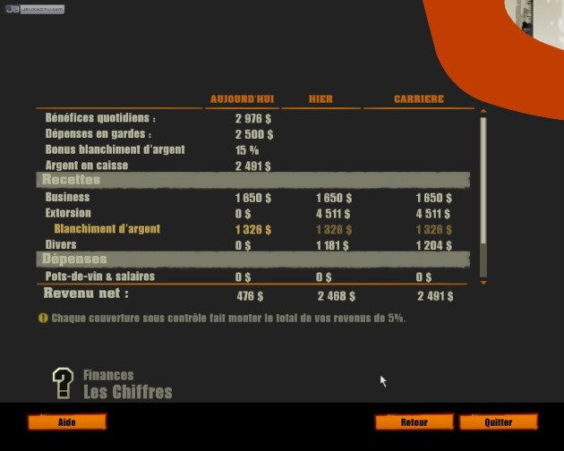 S'il commence l'aventure en tant que simple employé de Michael Corleone, Dominic doit très vite se faire un nom et devenir un véritable parrain à son tour. Pour cela, il lui faut prendre la tête d'un maximum de commerces et abattre les familles concurrentes. Comme son prédécesseur, le jeu prend la forme d'un monde ouvert, dans lequel le joueur est libre de se balader. Pour se rendre sur les lieux de nos futurs crimes, on peut donc aussi bien emprunter les trottoirs de la ville que la première voiture venue. Mais loin d'être un simple jeu d'action, Le Parrain 2 bénéficie de nombreuses composantes stratégiques. Il faut tout d'abord gérer au mieux sa famille en engageant les bons soldats aux bons moments et en promouvant les meilleurs au rang de Capo. Différentes spécialités sont au menu, tel le bricoleur qui permet de rentrer discrètement dans certains bâtiments, le médecin qui nous remet sur pied en un clin d'œil si l'on tombe sous les balles, le cambrioleur qui ouvre les coffres comme personne, le démolisseur qui fait sauter les bâtiments, etc. Une fois les bons hommes recrutés, il faut savoir les répartir en permanence entre la garde rapprochée, qui épaule le héros lors des combats à main armée, et les actions distantes. Car les attaques sur les commerces et business concurrents peuvent se faire de manière active via la vue à la troisième personne, ou stratégique grâce à une carte de la ville nommée l'Oeil du Don. Cette dernière permet d'envoyer ses troupes à l'assaut pendant que l'on vaque à d'autres occupations. On peut aussi y gérer le nombre de gardes destinés à protéger chacun de nos commerces, évaluer l'état de nos finances ou encore étudier les arbres généalogiques des différentes familles. Pour éliminer les Capo concurrents, il faut impérativement rendre service à des passants dans la rue, afin d'obtenir des informations cruciales sur la manière précise de s'en débarrasser. (étranglement, saut dans le vide, balle entre les deux yeux...). Sans cela, leur élimination physique n'aboutit qu'à un bref séjour à l'hôpital. La conquête des business doit également être réfléchie car en faisant main basse sur tous les établissements d'un type donné (prostitution, trafic d'armes, drogue, ateliers...) on obtient un bonus significatif (coût des gardes réduit, revenus doublés, gilets pare-balles...). Même l'intimidation des chefs d'entreprise n'est pas une simple affaire de gros bras, puisqu'il faut savoir doser la nature et le nombre de ses coups pour atteindre le point de rupture de chaque victime sans jamais dépasser le point de riposte. De nombreux autres paramètres viennent enrichir l'action et, sur le papier, le jeu a vraiment tout pour plaire. Hélas, la réalisation technique décevante vient largement tempérer les ardeurs.