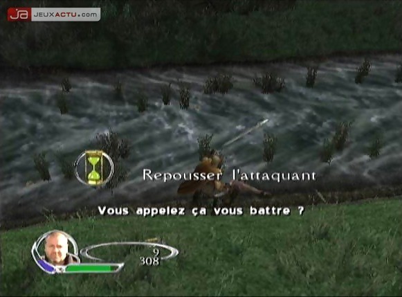 Avec toutes ces histoires, on en oublierait presque qu’on est ici avant tout pour parler d’un jeu, Le Roi Arthur, adaptation vidéoludique du film d’Antoine Fuqua, avec la belle, que dis-je, la sublime Keira Knightley. Les histoires d’Arthur et des Chevaliers de la Table Ronde (goûtons voir si le vin est bon lalala) n’étant que légendes, chacun est plus moins libre de les adapter à sa guise. Assez loin de ce que l’on a l’habitude d’entendre sur Arthur et ses chevaliers, le film d’Antoine Fuqua nous présente une version étrangement sombre des traditionnels récits. Le plus surprenant étant le personnage de Merlin, que l’on a l’habitude voir en vieux mage gaga chez Disney et qui est ici un magicien froid et hostile. Puisque tiré du film, le jeu reprend quasiment trait pour trait le scénario du film. Divisé en six chapitres (eux même divisés en plusieurs parties) et entrecoupés d’images du film, vous allez vivre, ou revivre, ce qui devait être la dernière mission des Chevaliers de la Table Ronde. Croyant en avoir terminé avec leurs obligations de chevaliers, Arthur et ses hommes s’apprêtaient à prendre une retraite bien méritée. Malheureusement pour eux, une dernière mission allait leur être confiée, et ils n’en reviendraient certainement pas tous vivants. A chaque étape (six pour le premier niveau, trois pour le second…) vous avez le choix entre deux personnages jouable. Arthur, Lancelot, Tristan, Bohort, Germanus, un commandant romain… sont autant de "héros" que vous pourrez diriger à votre guise. Ensuite, dans la manière de jouer, il s’agit ni plus ni moins que d’un sous-Seigneur des Anneaux, ou un très mauvais Baldur’s Gate : Dark Alliance-like. Quelque soit le personnage choisi, cela n’influencera en rien votre manière de jouer, vous essayez de taper comme un bourrin sur tout ce qui bouge avec l’un de vos trois coups de base, rapide, normal, ou puissant. Accrochez-vous tout de même avant de réussir à placer ce dernier coup, les assauts de huit ou dix barbares sur votre seule personne vous empêcheront systématiquement d’avoir recours à cette technique. Ne comptez pas non plus sur votre coéquipier, il ne sert pour ainsi dire à rien. Si vous décidez toutefois d’avancer prudemment, vous aurez aussi la possibilité d’avoir recours à un arc, aussi puissant qu’imprécis. Terminer une mission aura pour effet de vous octroyer quelques misérables points d’expérience, nécessaires pour vous "acheter" de nouvelles compétences. Rapidité, force, défense, attaques à l’arc, attaques de mêlée. Des compétences valables ensuite pour tous les personnages.