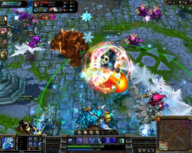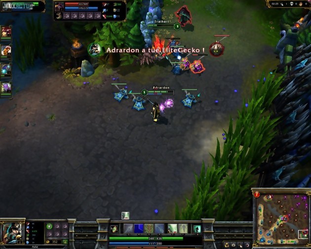 D'une partie à l'autre, il faut donc savoir renouveler ses stratégies et s'adapter en permanence à la situation du moment. Le changement de champion est une bonne manière de renouveler efficacement l'expérience de jeu et d'éviter toute routine. On en dénombre quarante, qui se jouent tous différemment puisqu'il sont dotés de sorts et capacités spécifiques. Tanks, unités de soutien, mages, archers, invocateurs... il y en a pour tous les goûts. En revanche, c'est clairement la disette en ce qui concerne les maps disponibles. Pour l'heure, les développeurs n'en proposent que deux, dont une est encore frappée de la mention "beta", signe qu'elle n'est peut-être pas encore tout à fait satisfaisante. Du coup, si les parties se suivent sans se ressembler en ce qui concerne le déroulement des combats, elles peuvent tout de même finir par lasser les joueurs les moins monomaniaques. La gratuité potentielle n'excuse pas tout, et nous sommes en droit d'espérer des arènes plus variées, aussi bien pour des questions d'ordre esthétique que stratégique. Gageons que de nouvelles maps verront le jour dans les mois à venir, et terminons par un mot sur le moteur graphique. Il a le bon goût de tourner sur des PC peu puissants et affiche des graphismes sympathiques... mais pas totalement enthousiasmants pour autant. L'influence de Warcraft III se ressent parfois un peu trop, et le surlignage des unités par un trait noir (façon Silverfall ou Borderlands) n'est pas toujours du meilleur effet. Mais heureusement, l'intérêt du jeu est vraiment ailleurs.