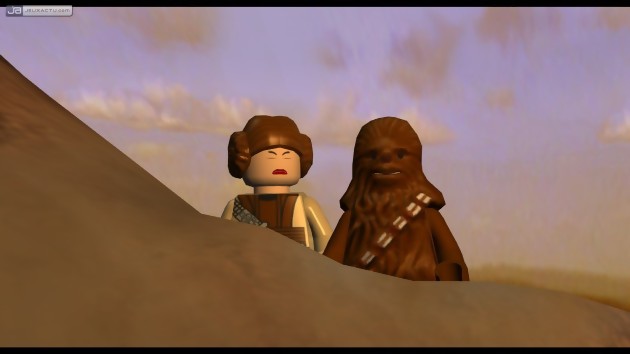 Ne croyez pas que refaire les niveaux 2, 3, 4 ou 5 fois est vite rébarbatif car, pour tous fans de Star Wars et j’insiste bien sur ce fait-là, c’est un vrai plaisir de découvrir avec quelle minutie Traveller’s Tales est resté fidèle aux créations de George Lucas n’hésitant pas tout de même à glisser une pointe d’humour dans ces cut-scènes ou dans les réactions des personnages. Décalé ? Oui mais juste ce qu’il faut pour ne pas tomber dans des blagounettes enfantines et à répétition qui auraient raison de notre sens de l’humour. Car c’est sûr, de prime abord LEGO Star Wars II : La Trilogie Originale a tout pour être un jeu pour nos chères têtes blondes. Des personnages en LEGO, des décors en briques et des gargarismes à la place des voix, tout est réuni pour convenir aux attentes des tout petits. Mais au final, même un habitué des graphismes matures baignant dans le sang et les tripes à l’air tombera sous le charme de LEGO Star Wars II : La Trilogie Originale tant la réalisation est harmonieuse et ne tombe pas dans le "fraisi-cliché" de Charlotte aux Fraises.