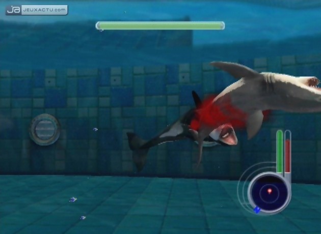 Si Les Dents de la Mer est plutôt joli à regarder – sans non plus être un exemple de beauté non plus - le gameplay, amusant les deux premières heures, devient par la suite assez répétitif. En tant que simple requin, il faut bien évidemment de pas être trop exigeant en matière de diversité. Notre requin blanc ne pourra donc utiliser divers armes destructrices, prendre le volant de véhicules ou bien encore sauter en parachute, il y va de soi, bien qu'il soit possible de débloquer quelques mouvements sympathiques ou gagner en puissance. Cette comparaison avec GTA est loin d’être hors-sujet puisque le concept du jeu Les Dents de la Mer s’en inspire grandement, une fois les trois premiers niveaux passés. Aussi, le joueur sera libre de choisir sa mission par le biais d’une carte où il pourra se balader librement. Il y a bien évidemment quelques diversités, comme tenter de s’évader d’un aquarium géant, se défaire d’un hameçon géant tiré par un navire ou bien encore se battre avec d’autres mammifère marin tels que des orques, des dauphins ou bien d’autres races de requins (bleus, marteaux). Plutôt bien animé, le requin blanc du jeu Les Dents de la Mer perd en intérêt à cause d’une caméra récalcitrante et qui a bien du mal à suivre l’action lors de changement de direction inopinée. De même, le jeu comporte un certain nombre de bugs de collision assez bloquants dans le sens où il n’est pas rare que le requin se coince dans un élément du décor, sans jamais pouvoir s’en défaire. Frustrant, surtout lorsqu’on n’a pas eu le temps de sauvegarder sa partie.