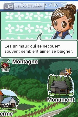 Le principe du jeu est simple : vous débarquez dans la ferme de votre oncle et devez faire copain-copain avec tous les animaux pour qu'il puisse, ainsi que votre cousine, les approcher et les prendre en photo. Le jeu est d'ailleurs parrainé par Yoneo Morita, photographe animalier assez connu à qui l'on doit notamment plusieurs ouvrages dont "Le Livre des Grosses Truffes" et "Gros Livre des Petites Truffes". Chiens, chats, rongeurs, poussins, canards... Autant d'adorables bestioles dont vous devrez vous occuper pour gagner leur affection et ainsi compléter petit à petit votre livre de photographies. Evidemment, tous ne sont pas accessibles dès le départ, c'est en vous occupant de certains qu'ils appeleront un copain, qui s'ajoutera donc à la liste de vos protégés. Au début, quand on les voit se dandiner en 3D, on ne peut qu'être touché. C'est mimi tout plein, plutôt bien fichu et on se dit qu'on va drôlement s'amuser. Nintendogs ? Ringardisé, ici on a droit à pas moins de 18 animaux ! Mais cette impression ne dure hélas pas longtemps...