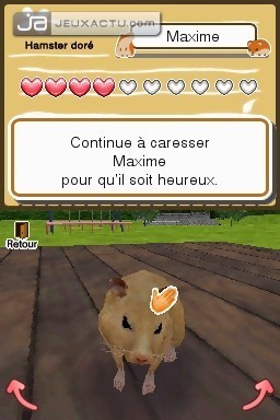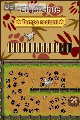 Le principe du jeu est simple : vous débarquez dans la ferme de votre oncle et devez faire copain-copain avec tous les animaux pour qu'il puisse, ainsi que votre cousine, les approcher et les prendre en photo. Le jeu est d'ailleurs parrainé par Yoneo Morita, photographe animalier assez connu à qui l'on doit notamment plusieurs ouvrages dont "Le Livre des Grosses Truffes" et "Gros Livre des Petites Truffes". Chiens, chats, rongeurs, poussins, canards... Autant d'adorables bestioles dont vous devrez vous occuper pour gagner leur affection et ainsi compléter petit à petit votre livre de photographies. Evidemment, tous ne sont pas accessibles dès le départ, c'est en vous occupant de certains qu'ils appeleront un copain, qui s'ajoutera donc à la liste de vos protégés. Au début, quand on les voit se dandiner en 3D, on ne peut qu'être touché. C'est mimi tout plein, plutôt bien fichu et on se dit qu'on va drôlement s'amuser. Nintendogs ? Ringardisé, ici on a droit à pas moins de 18 animaux ! Mais cette impression ne dure hélas pas longtemps...