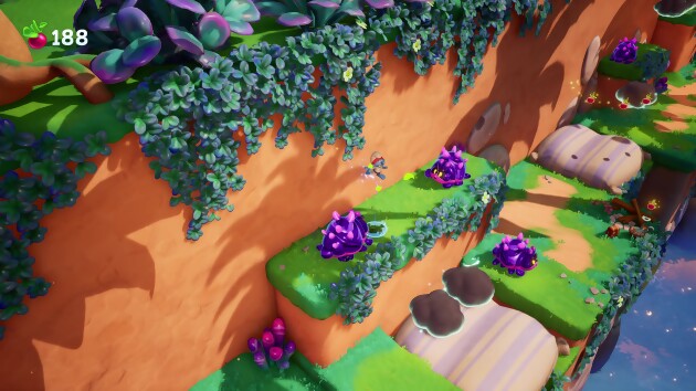 Difficile quand on parle de jeu de plateforme de ne pas citer Mario, sans doute le meilleur représentant d'un genre qu'il a évidemment initié dans les années 80 et que personne n'a jamais réussi à dépasser. Du moins, c'était le cas jusqu'en septembre dernier, puisqu'un certain Astro Bot est venu contester sa couronne, à tel point que l'hégémonie de Nintendo est aujourd'hui remise en question. Alors certes, l'exclu de PlayStation reprend énormement des ingrédients que le plombier moustachu a imposé sur le marché, notamment avec Super Mario Galaxy, mais elle le fait avec plus d'entrain, d'epicness et un tempo parfaitement maîtrisé. Les Schtroumpfs L'Épopée des Rêves va lui aussi reprendre les codes des jeux Mario, mais c'est davantage du côté de 3D World que les inspirations vont tomber. Déjà par le choix de la caméra, en vue aérienne, ou plutôt top down comme le disent si bien certains spécialistes du cinéma. De cette manière, on voit les choses de façon plus large, et surtout, ça permet aussi de se débarrasser de la caméra à gérer manuellement. A l'image de Super Mario 3D World, le joueur n'aura pas besoin effectivement de se prendre la tête avec le stick analogique droit, puisque tout a été étudié pour qu'on puisse obtenir une vue d'ensemble, quelles que soient les circonstances. Chose avec laquelle le jeu n'hésite pas à jouer, notamment sur l'emplacement d'objets cachés. D'ailleurs, en coopération sur le même écran, les développeurs d'Ocellus Services ont plutôt bien géré les deux personnages, avec la possibilité pour l'un des deux de revenir près de son coéquipier si jamais il a tendance à sortir du champ d'action.