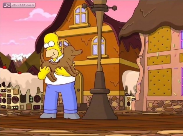 The Simpsons : Hit & Run, sorti sur Xbox et PS2, se voulait un GTA-like situé à Springfield. Le résultat était franchement réussi, mais cette fois, les développeurs ont opté pour un style légèrement différent. Certes il y a toujours cette bonne vieille ville comme point de départ, mais les missions sont indépendantes les unes des autres et se situent chacune dans un univers différent. Si bien qu’on vit un peu l’aventure comme une succession d’épisodes, et donc qu’on a l’impression d’être au cœur d’une saison inédite. Et surtout, c’est l’occasion de nous offrir à chaque fois de grands délires puisque le studio s’en est donné à cœur joie. Evidemment, on trouve des tonnes de références à l’univers de la série avec, entre autres, Monsieur Scintillant, le Royaume du Chocolat, l'invasion des Dauphins... Tous nos personnages favoris ont leur rôle, plus ou moins grand, dans l’aventure, depuis Ned Flanders jusqu’à Patty et Selma en passant par Skinner, le professeur Frink, le vendeur de BD, Smithers, grand-père Simpson… Ce serait déjà très bien comme ça, mais les développeurs ont eu une grande idée. Si Les Simpson, la série, s’amuse régulièrement à mettre en boite (entre autres) la Fox et la télévision en général, Les Simpson : le jeu se devait d’en faire de même avec Electronic Arts et le jeu vidéo. Et là, il faut reconnaître qu’ils ont fait très fort !