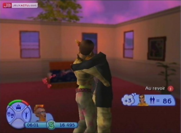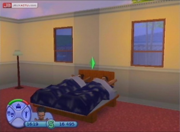 Sur le fond comme sur la forme, le principe des Sims 2 sur consoles reste toutefois identique. Bien qu'assez primaire et redondant à la longue, le concept est terriblement addictif pour que des millions de joueurs et joueuses y adhérent à nouveau. Difficile de changer une équipe qui gagne, n'est-ce pas ? Quant à ceux dont le mot Sims n'évoque rien de particulier – vous avez l'eau courante et l'électricité depuis longtemps au moins ? – on se doit tout de même d'en définir la notion. Un Sims est tout simplement un personnage virtuel que l'on dirigera dans toutes ses pérégrinations dans un monde contemporain au nôtre. On l'instruit, on le nourrit, on le nettoie et on gère ses relations sociales et professionnelles. Tout un programme ! Qu'on le veuille ou non, Les Sims sont donc la parfaite représentation du monde capitaliste et de sa devise "métro-boulot-dodo". Comme je le dis précédemment, on prend malgré tout un malin plaisir à être entraîné par cette spirale infernale et cette frénésie consumériste. Sans cesse, il nous est proposé d'acheter toujours plus de mobilier pour améliorer son intérieur ou le réaménager et par récurrence trouver un travail plus rémunérateur ou obtenir une promotion pour couvrir les dépenses. Le travail, c'est la santé ! Ne rien faire, est-ce la conserver ? Rien n'est moins sûr…
