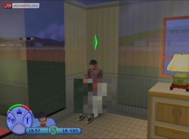En premier lieu, il faudra faire son choix entre le mode "Histoire" ou le mode "Libre Partie". Ce dernier permet de gérer selon votre bon vouloir une famille de 4 Sims au maximum vivant sous le même toit. Libre à vous également de construire vous-même leur villa ou de ne pas trop se fatiguer en partant avec du tout prédéfini. On lui préférera toutefois le mode "Histoire" qui est de loin le plus intéressant dans la mesure où vous serez aiguillé par de nombreux objectifs à remplir et un second joueur pourra même vous seconder dans cette tâche en écran splitté. Plutôt sympathique. Vient ensuite l'étape tant attendue de la création de son personnage. Si ce dernier est généré aléatoirement en déterminant de prime d'abord les traits de ses grands-parents puis de ses parents respectifs, il est tout à fait possible de le retoucher à sa guise. Le nombre de détails à paramétrer est assez imposant pour faire du sur-mesure sur chacune des parties de son corps et assurer les finitions en rajoutant quelques accessoires ici et là. Il faudra ensuite sélectionner son signe astral qui interagira sur plusieurs caractéristiques donnant les grandes lignes de sa personnalité et de son comportement en société. Ensuite, il faudra définir son aspiration principale. Autrement dit, certains personnages ne seront heureux qu'en tirant dans tous les coins, d'autres rechercheront la connaissance, certains ne jureront que par l'argent tandis que d'autres chercheront par tous les moyens de se rendre populaire. Ainsi, ils exprimeront inopinément des désirs (lire un bouquin, acheter un ordinateur, élargir son réseau d'ami, etc.) dont la satisfaction vous rapportera de précieux points d'aspiration et des craintes (se faire humilier en public, etc.) qui en retirera tout autant de votre total si elles s'avèrent fondées.