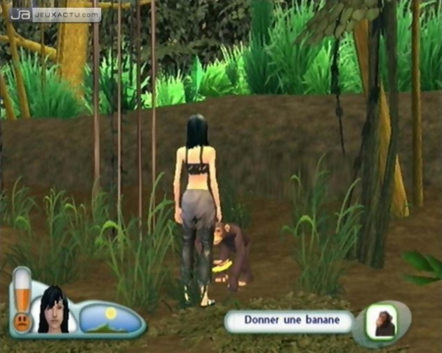En septembre dernier, les petits êtres virtuels les plus célèbres du monde prolongeaient leur été en partant tardivement en vacances. Un peu moins de deux mois après l’ultime virée que fut Les Sims 2 : Bon Voyage, force est de constater que leur famille et leur employeur ne sont pas près de les revoir. C’est lors d’une petite sortie sur un yacht de nouveaux riches qu’ils furent pris dans une tempête les menant, vous vous en doutez, au naufrage. Séparés les uns des autres, ils vont devoir se retrouver pour former une tribu, s’accommoder à cette nouvelle façon de vivre et, pourquoi pas, tenter de mettre les voiles vers des horizons plus accueillants. Comme tout bon naufrage qui se respecte, c’est sur une plage déserte que votre avatar préalablement créé débutera son opération de survie. Le concept n’est pas nouveau, il est même à la mode - Lost, Koh Lanta entre autres -, et a pour prédécesseur vidéoludique les très frustrants Lost in Blue. Forcément, l’aventure ne peut que nous paraître familière, à la différence près que l’esprit des Sims apporte une certaine légèreté dans cet incident qui aurait dû être dramatique. Ici, la progression n’est pas fastidieuse pour un sou, tant le concept parvient à nous accrocher. Bien évidemment, il ne faudra pas s’attendre à disposer d’un nécessaire de survie, le sort nous ayant muni que d'un canif et d'une paillasse. L’occasion est donc parfaite pour les Sims de s’adonner à des joies dont ils étaient certainement peu coutumiers : cueillette, couture, bricolage, dressage de chimpanzés, etc. Les environs abondent de matières premières, la faim et le sommeil se font difficilement sentir, à condition de nourrir ses protégés, et de les mettre au repos régulièrement. Même en mangeant tout et n'importe quoi, une bonne gerbe suffira à ne pas rendre notre personnage malade. Bref, tout a été pensé pour que le joueur n’ait pas à s’arracher les cheveux, l’orientation grand public se faisant sentir à tous les niveaux. Inutile de jouer les faux élitistes donc. Le constat est similaire en ce qui concerne toute la partie technique. Les Sims 2 : Naufragés est moche, vieux, lent, avec des temps de chargement fréquents; mais qu’importe, le joueur se lançant dans l’aventure n’étant à priori ni une personne exigeante, ni une personne pressée. D’ailleurs, le jeu visant avant tout les amateurs de la série, Maxis et Electronic Arts ont bien veillé à offrir un très grand nombre de possibilités, histoire d’éviter le syndrome “changement de décor”. Le seul véritable reproche que l’on pourrait émettre ici, est le manque cruel de scénarisation qui nous fera vite tourner en rond. On se contente de vivre, point.