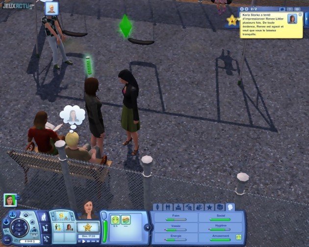 Une fois n'est pas coutume, commençons par détailler les petites nouveautés introduites par cette extension avant de nous intéresser à ce qui constitue véritablement le cœur du jeu. Dès la phase de création des Sims, on peut ainsi s'apercevoir de quelques améliorations manifestes. A commencer par la gestion de la musculature, nettement plus fine qu'auparavant puisqu'il est désormais possible de gérer indépendamment l'embonpoint d'une personne, le volume de ses muscles et leur définition (qui correspond à un marquage plus ou moins prononcé de leurs contours). Pour les femmes, un curseur de taille de poitrine fait enfin son apparition. Les joueurs masculins, notamment, vont pouvoir s'en donner à cœur joie et donner libre cours à leurs fantasmes. Les développeurs ne s'en sont d'ailleurs pas privés puisque l'on croise en ville une multitude de jeunes femmes gâtées par la nature. Si jamais il vous prenait l'envie de leur proposer une baignade, sachez qu'il est dorénavant envisageable de construire des piscines intérieures et courbées (une partie de mur doit tout de même rester droite pour accueillir l'échelle). A vous les jacuzzis de stars ! Toujours dans le domaine des jeux d'eau, vous apprécierez l'arrivée des fontaines, qui font de bien belles décorations. Les Valérie Damido en herbe se réjouiront également de la possibilité nouvelle d'ajustement de la hauteur des décorations murales. Les apprentis architectes s'amuseront quant à eux à tester la création de demi-murs ou de plateformes qui, entre autres et respectivement, serviront à élaborer des cuisines américaines ou des scènes de concert. Et surtout, ils pourront installer de véritables ascenseurs en précisant même quels étages peuvent être accessibles ou non aux sims. Si la notion de verticalité fait son apparition, c'est parce que Bridgeport, la ville nouvelle apportée par cette extension, représente un quartier urbain et moderne, où les buildings pullulent. Les Sims peuvent donc désormais habiter dans des immeubles ! Les conflits de voisinage ne sont hélas pas gérés par le jeu, mais une telle fonctionnalité entraîne tout de même son lot de nouveautés.