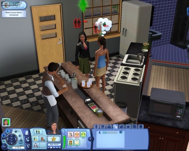 S'il était déjà possible d'incarner un guitar hero dans le jeu de base, les Sims 3 : Accès VIP se dote de nouveaux instruments de musique (contrebasse, batterie, piano) et de la possibilité de créer un véritable groupe. Il faut pour cela avoir une compétence suffisamment élevée dans l'un des instruments disponibles et aller recruter d'autres sims musiciens. Chaque groupe peut comprendre jusqu'à quatre membres, qui ne manqueront pas de répondre aux propositions de concert qu'ils recevront sur leur téléphone. Si vous n'avez que faire de la musique, il vous reste tout de même la possibilité de créer de simples bandes d'amis. Jusqu'à huit copains peuvent ainsi s'inviter les uns les autres à tel ou tel endroit, et certains lieux (théâtre, stade, spa...) disposent d'interactions spécifiques pour les bandes. Au rayon des fonctionnalités inédites, on trouve également le domestique, parfait pour nous débarrasser des tâches ménagères. Contre un salaire, le gîte et le couvert, cet homme élégant se charge des enfants, de la cuisine et du nettoyage. Autre chose : l'option "Convaincre de..." permet de suggérer certaines interactions sociales à deux sims, autres que le personnage que l'on dirige, afin qu'ils se rapprochent ou se détestent. La compétence de mixologie se destine quant à elle à ceux qui ont toujours jalouser Tom Cruise dans Cocktail. La création de boissons est un art qui offre bien des avantages : tout d'abord celui de travailler au noir dans les bars puis, une fois un certain niveau atteint, celui d'élaborer des recettes aux effets quasiment magiques (bonus d'humeur, gain de compétences, etc.). Et puisque l'on parle de surnaturel, comment ne pas évoquer l'arrivée des vampires dans cette extension ! Ces créatures de la nuit craignent naturellement le soleil, qui les affaiblit considérablement. Mais la nuit, ils disposent d'avantages non négligeables : déplacement à pied extrêmement rapide, vitesse d'amélioration de compétences augmentée, capacité de détection des proies aux alentours, pouvoir spécial pour lire dans les pensées des sims et apprendre beaucoup de choses sur eux à leur insu... Alléchant, non ? Hélas, la bien-pensance caractéristique des Sims à une nouvelle fois frappé. Passe encore qu'on ne puisse boire que des jus de fruits dans les boîtes de nuit, mais incarner un vampire qui doit impérativement demander l'autorisation à ses victimes potentielles de boire leur sang ou de les transformer, c'est un peu fort ! La toute-puissance en prend un coup et l'expérience manque finalement de piquant. Plutôt qu'essuyer sans cesse des refus, on finit par s'abreuver de poches de sang gardées au frigo ou, plus humiliant encore, par cultiver des plasmafruits. Oui, les créateurs des Sims ont inventé le concept du vampire pacifiste et végétarien. Pas très VIP pour le coup...