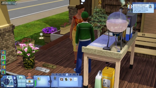Les écoles plus classiques ne sont pas en reste puisque, suivant un schéma typiquement américain, les Sims adolescents reçoivent automatiquement une invitation au bal de fin d'année. Le moment venu, une limousine vient les chercher pour les conduire sur la piste de danse. Selon les cas et leur niveau de chance, les ados en sortiront avec le titre de roi du bal ou bien termineront leur soirée par une bagarre. Quant aux jeunes adultes fiancés, il leur est désormais permis d'organiser des enterrements de vie de garçon (ou de jeune fille, le cas échéant). La principale différence avec une fête standard ? La présence de "danseurs et danseuses professionnels". Hé oui, dans le monde aseptisé des Sims, l'activité de strip-teaseuse n'existe pas plus que les boissons alcoolisées. Mais la déprime, oui ! Car en entrant dans l'âge adulte, un sim peut vivre une crise existentielle. L'épreuve reste facultative, mais si vous l'acceptez, votre protégé obtiendra un état d'esprit négatif et des souhaits de crise à réaliser. Une fois ceci fait, il passera au contraire dans un état d'esprit positif et obtiendra des points de bonheur à long terme. Les personnes âgées sont les grandes oubliées de cette extension, qui ne leur propose guère que quelques objets à acheter, comme les cannes par exemple. Au delà des considérations d'âge, le disque additionnel rappelle également à notre bon souvenir le laboratoire de chimie aperçu il y a plus de dix ans dans Les Sims : ça vous change la vie. Son utilisation augmente la compétence de logique et aboutit à la création de potions aux effets divers et variés (meilleure humeur, envie pressante, jeunesse retrouvée...). Plus anecdotique, le mode achat propose désormais des caméras. Grâce à elle, les Sims se filment (via une interface en vue subjective) puis regardent le résultat sur leur télévision. Une occupation terriblement vaine et vide de sens pour le joueur, mais il paraît que c'est le genre qui veut ça. Quant à la création de personnages, elle se dote désormais d'un réglage de pilosité. Finis les torses glabres des métrosexuels, et place aux hommes, aux vrais ! Dernière innovation : le partage de souvenirs. A chaque fois qu'un Sim vit quelque chose de plus ou moins important, une petite fenêtre apparait sur l'écran et nous invite à poster l'évènement sur Facebook. Cela peut être amusant pour les drogués des réseaux sociaux, mais il n'est vraiment pas certain que leurs amis apprécient de voir débarquer dans leur fil d'actualité des messages tels que "Jocaste Galantome vient d'adopter une jolie petite fille douce et pétillante. Elle se souviendra toujours du jour de cette nouvelle arrivée dans la famille !" Quand le virtuel envahit à ce point le réel, il est peut-être temps d'aller jouer dehors. Pour de vrai.