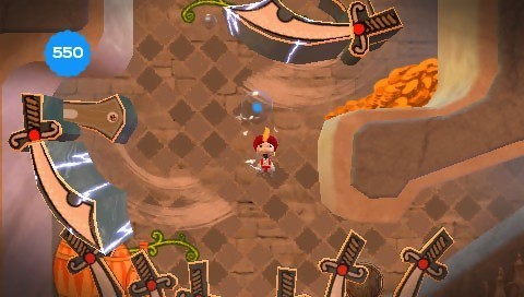 Dans les faits, LittleBigPlanet vous autorise à partir soit d'une base de niveau déjà existante, soit du néant. Une fois à l'aise dans le cadre choisi, il vous est possible de construire entièrement un niveau, et ce quelque soit le type de gameplay que vous souhaitez y intégrer. S'orientant plus facilement vers le jeu de plate-forme, le titre vous permet également de mettre en place une course, de mélanger les deux, de vous spécialiser dans l'action, ou encore d'inventer votre propre concept. Le tout en gardant bien à l'esprit que le fait de développer entièrement un "projet" personnel demande énormément de temps et que bien évidemment, le soft a ses limites. Malgré tout, les premiers pas dans LittleBigPlanet sont fascinants, tant le jeu regorge de types d'éléments, de possibilités d'interaction et d'outils de décoration. Avec votre panneau de commande, le Popit, vous accédez rapidement aux divers blocs, interrupteurs et modificateurs de forme afin de mettre en place des pièges, de générer des tremplins ou de creuser des galeries labyrinthiques. Une richesse éminemment louable qui étonne encore davantage dans le cadre d'un titre évoluant sur console portable. Mieux, Sony en a profité pour revoir quelque peu sa copie et les niveaux ne se déroulent désormais plus que sur deux plans, retirant une grande part d'imprécision dans la prise en main. En revanche, la transposition du concept sur PSP ne peut se faire sans quelques restrictions, comme l'impossibilité désormais de créer des formes libres. Le jeu vous contraint à composer avec une grille et à revoir les bases du pixel art. Dans les grandes lignes donc, LittleBigPlanet reste grosso-modo identique à son grand-frère, conservant son univers original et sa base de conception extrêmement poussée, mais sans aucune remise en cause majeure. Car si son exhaustivité est un atout, elle est également son problème majeur.