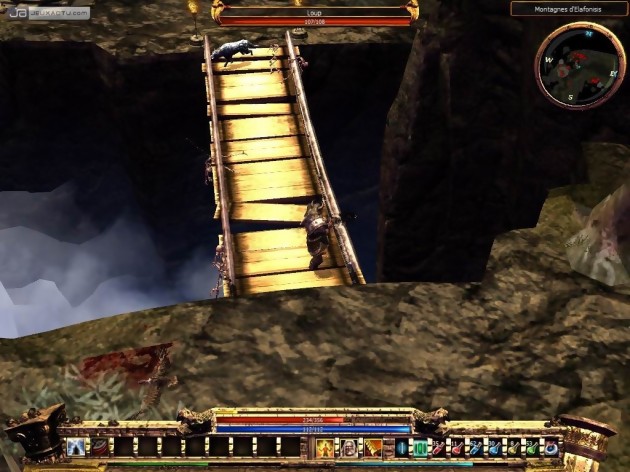 Loki est un jeu qui fait mal, et qui le fait bien. Prenant totalement le contre-pied de l’autre casse-monstres mythologique, le surestimé et aseptisé Titan Quest, la dernière production de Cyanide joue la carte de la violence brute, de l’affrontement sans détour. Ici, les armes blanches travaillent sans relâche, l’hémoglobine gicle des corps par hectolitres, les araignées géantes crissent quand elles meurent, les ours hurlent et l’interminable caravane surnaturelle qui se rue sur vous trépasse peu à peu. Pas de finesse, pas de stratégie, vous êtes là pour massacrer, en 3D et en vue de dessus, tout ce qui bouge. Découpés en zones de tailles variables, mais qui offrent rarement plus d’un quart d’heure de jeu, les quatre actes de Loki vomissent de l’ennemi dans des proportions assez ahurissantes. Tous plus stupides les uns que les autres, développant des tactiques offensives navrantes, ces opposants ont toutefois l’instinct de groupe suffisamment développé pour que vous vous retrouviez régulièrement dans des positions délicates, en l’occurrence encerclé par une meute d’une dizaine de créatures unies par le désir de vous voir crever dans d’atroces souffrances. Première originalité de ce Loki, la mort n’est pas pénalisante. Vous reprenez conscience après chaque disparition au début de la zone avec tous vos attributs, et ne perdez que le temps qu’il vous faut pour rejoindre votre point de chute. Gros joueurs de tous les ersatz de Diablo parus depuis la sortie du maître, les développeurs parisiens ont tenté de mettre au placard tout ce qui leur avait déplu. Et se voir délester de x-milliers de points d’XP à chaque décès faisait clairement partie de la seconde catégorie. Tant mieux, car on meurt beaucoup dans ce Loki pas vraiment difficile mais extrêmement laborieux. Passé le 340ème monstre éliminé sur la même carte, l’attention se relâche, le joueur tente d’accélérer un peu sa progression, et finit généralement par le regretter.