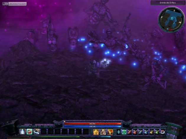 Taper, taper, taper, la répétitivité est l’un des défauts récurrents du genre, et malgré quelques bonnes idées, Loki tend lui aussi à s’essouffler. Incarnant, au choix, une shaman aztèque très proche des esprits de la nature, une amazone grecque portée sur le lancer de disque tranchant, un explosif mage égyptien ou un guerrier scandinave qui personnifie parfaitement le terme de "barbare", vous devez visiter les contrées natales de ces héros. Des décors exotiques, parfois ratés, parfois très beaux, souvent rehaussés de chouettes effets, mais hélas pas bien variés et qui tendent tous à rappeler des expériences ludiques plus ou moins récentes. Trois chapitres sur quatre donnent ainsi la sale impression de n’être que des versions tout 3D et normal mappées de Diablo II, tandis que l’escapade grecque fait, inévitablement, penser à Titan Quest. Evidemment, et comme le rappelait Thomas Veauclin, directeur artistique, lors de notre dernière rencontre, on ne peut pas réinventer la Grèce ou l’ancienne Egypte. Ce que l’on peut néanmoins réinventer, c’est le bestiaire de ces différentes contrées. Et là, il y a encore du boulot. Si un indéniable travail créatif a été effectué, visant notamment à rendre le design les créatures plus agressif, quelques monstres habitués du genre auraient bien fait de déclarer forfait pour cette bataille-là. Araignées géantes déclinées à toutes les sauces (de glace, tarentule, …), nuées de guêpes, les fautes de goût sont nombreuses. Le déroulement du jeu (vous débutez par l’acte de votre héros, puis poursuivez comme bon vous semble) dévalorise d’ailleurs votre champion. Alors que vous avez conclu un acte en butant des boss douze fois plus grands que vous, vous vous retrouvez quelques instants plus tard, à débuter un nouvel acte en broyant du jaguar. Pas vraiment palpitant. C’est toutefois durant ces joutes contre de la piétaille démoniaque que les sensations de jeu sont les meilleures. Les clics que vous multipliez sur vos ennemis afin de les attaquer sont autant de mises à mort, et un sentiment de toute puissance guerrière envahit rapidement le fendeur de crâne que vous êtes. Quel que soit le héros sélectionné, et que ce soit à l’épée à deux mains ou au sort offensif, quand ça tape et ça touche, ça fait mal. Les sensations sont bien moindres contre les boss. Quatre figures mythologiques majeures se dressent sur votre route dans chaque monde, toutes plus énormes et puissantes les unes que les autres. Est-ce la faute à une bande-son trop effacée, ou à la pseudo-volonté d’introduire, sans convaincre, une facette tactique dans chaque bataille, toujours est-il que ces duels se torchent en moins de temps qu’il n’en faut pour faire le quart d’une petite zone de jeu. Pour le pic d’adrénaline, il faudra repasser…
