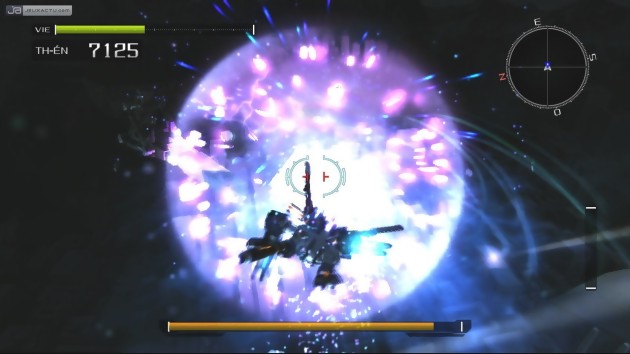 Toujours aussi ingénieux et surtout fainéant, l’Homme a eu la présence d’esprit de fabriquer des Vital Suits, appelés VS dans leur jargon. Ces robots qui font une fois encore référence au film de Ridley Scott, permettent à la fois d’augmenter la puissance de frappe mais aussi de se protéger des attaques frontales des Akrids, capables de balayer n’importe quel Humain d’un simple revers de griffes. Il existe plusieurs variétés VS dans le jeu et Wayne aura parfois le lourd fardeau de choisir entre un robot à la détente plus généreuse mais à la force de frappe amoindrie ou un VS plus lent mais plus puissant ; en attendant l'ultime VS de fin de niveau, comparable à un mech de Zone of The Enders. Vous l’avez compris, chaque type de VS se distingue par des caractéristiques bien distinctes. Tout comme Wayne, ces mechs surpuissants peuvent être équipés de deux types d’armes différentes, à placer de part et d’autres de ces machines. Là aussi, les munitions sont légions et laisser le doigt appuyé sur la gâchette ne pose pas vraiment de problème. La présence et l’utilisation de ces VS procure une sensation de puissance inégalée, d’autant que Lost Planet se présente avant tout comme un jeu d’action où l’on réfléchit après avoir ouvert le feu ou pendant, ça dépend. A cela s’ajoute un autre élément, apparaissant comme l’une des subtilités du gameplay. Wayne, évoluant dans un climat polaire ubiquiste, il doit en permanence surveiller sa jauge de Thermo-Energie en constante chute, due au froid polaire qui règne sur la planète. Cette jauge de Thermo-Energie n’est autre que l’assurance de vie de Wayne qui, une fois vidée, entraînera la chute de sa barre de vie, engendrant inexorablement sa mort. Mais c’est sans compter sur la foultitude d’ennemis et d’Akrids laissant traîner quelques gouttes de cette Thermo-Energie pour maintenir sa forme olympique.